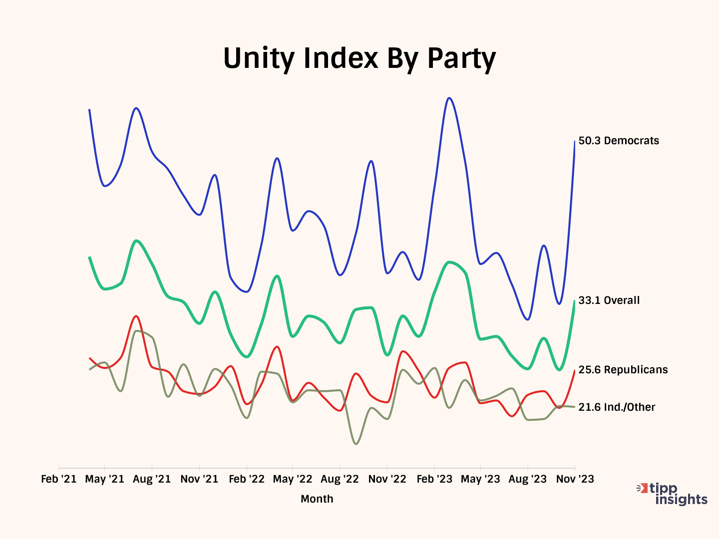 How do these numbers compare with previous ones? I&I/TIPP also produces a Unity Index, which allows someone to compare one month's results with other months with an apples-to-apples comparison.