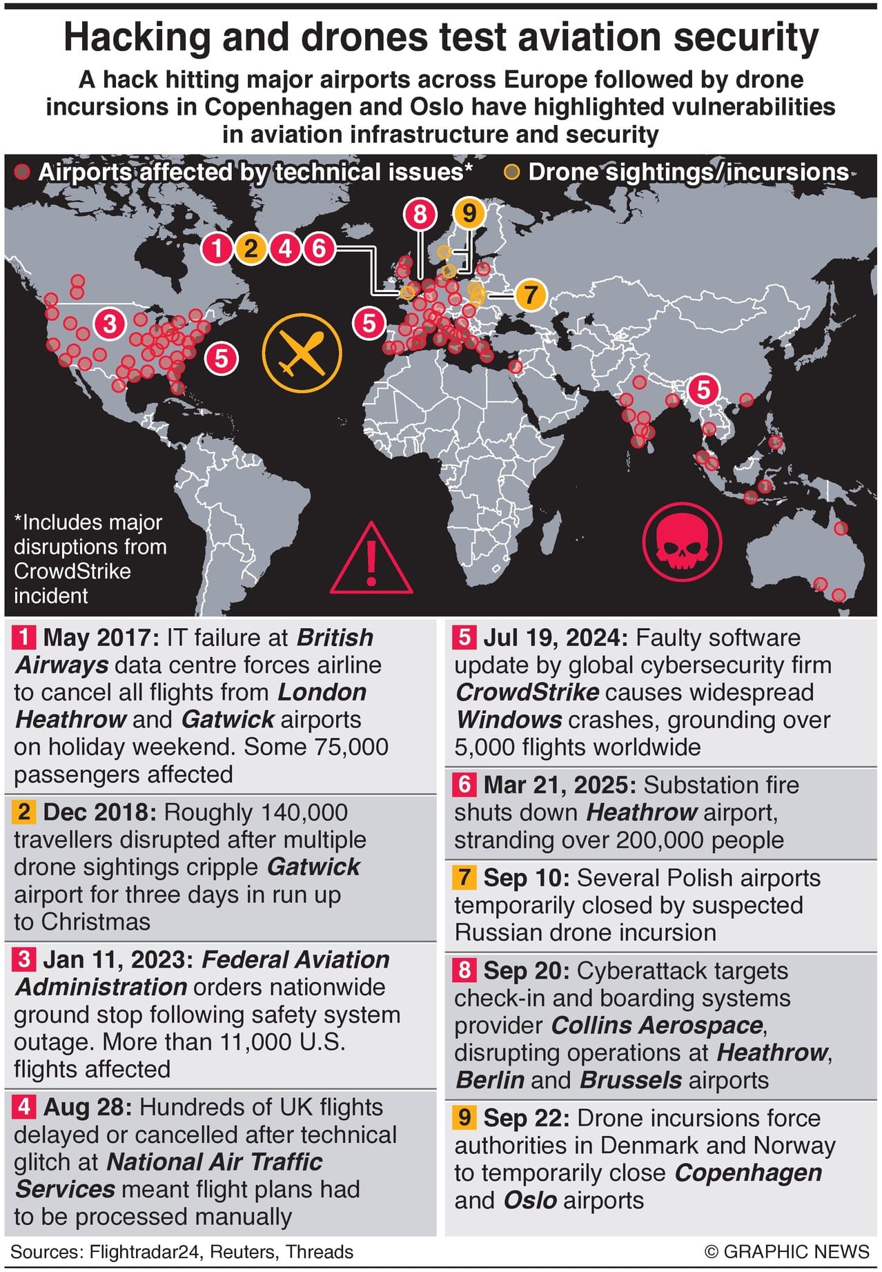 A hack hitting major airports across Europe followed by drone incursions in Copenhagen and Oslo have highlighted vulnerabilities in aviation infrastructure and security.