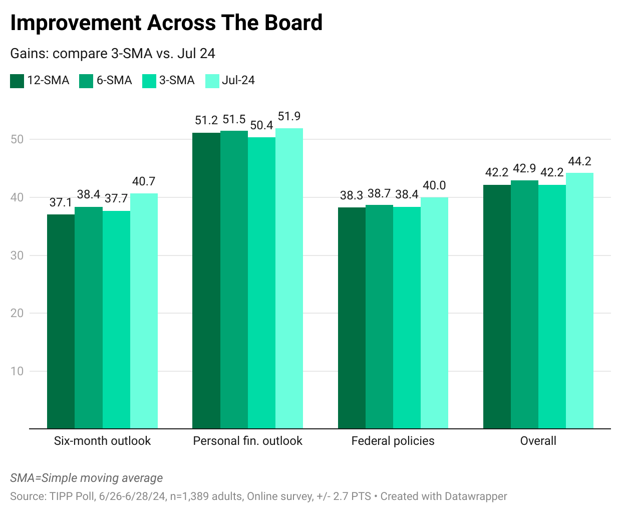 RCM/TIPP surveyed 1,389 adults from June 26 to June 28 for the July index. The online survey utilized TIPP's network of panels to obtain the sample. A more detailed methodology is available here.