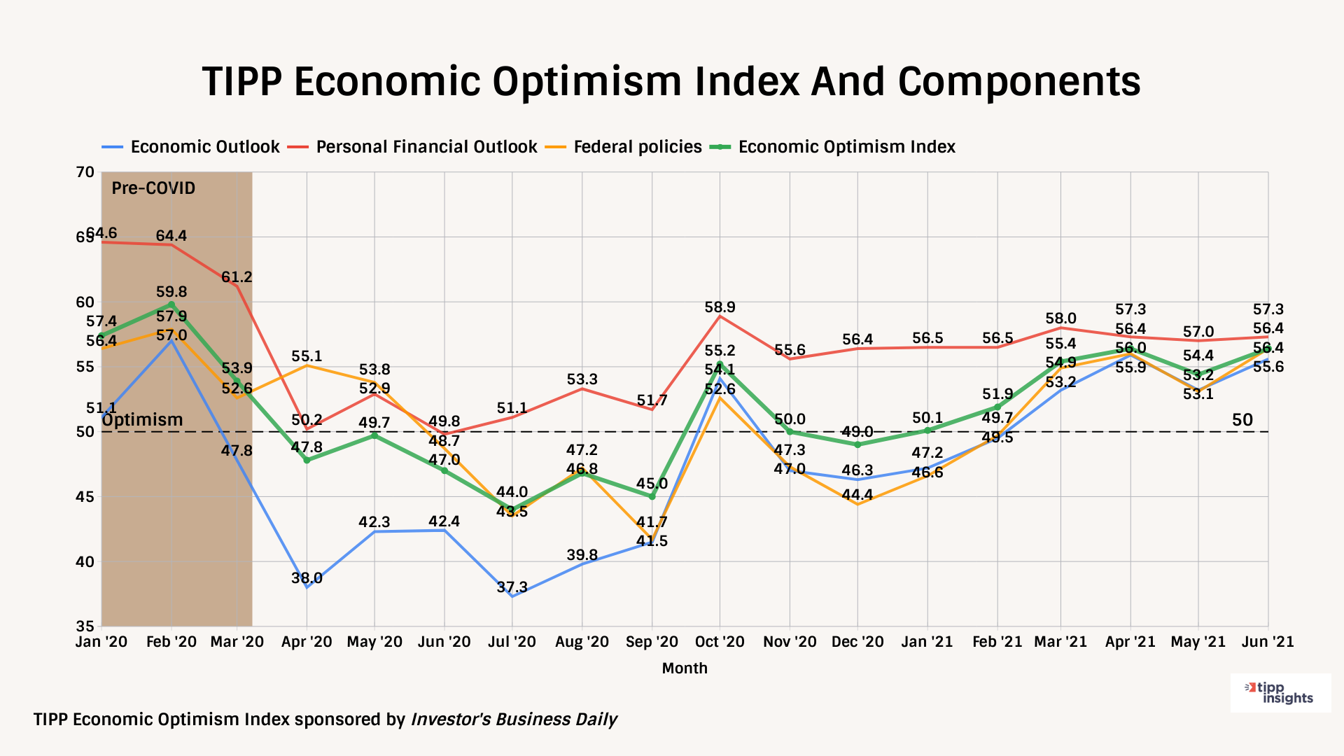 The TIPP Economic Optimism Index is the most well-known of our TIPP indexes. Investor's Business Daily publishes the IBD/TIPP Economic Optimism Index every month.