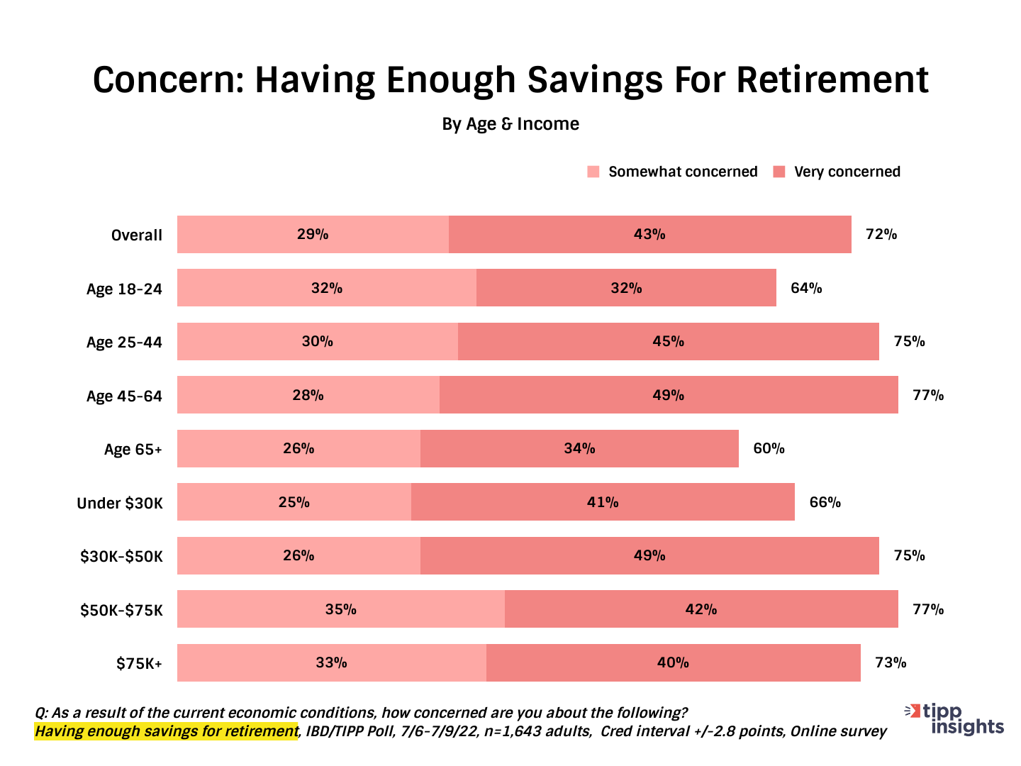 Americans' wages are not keeping pace with high inflation, leading to worries about saving for retirement, paying for housing, and meeting health care costs.