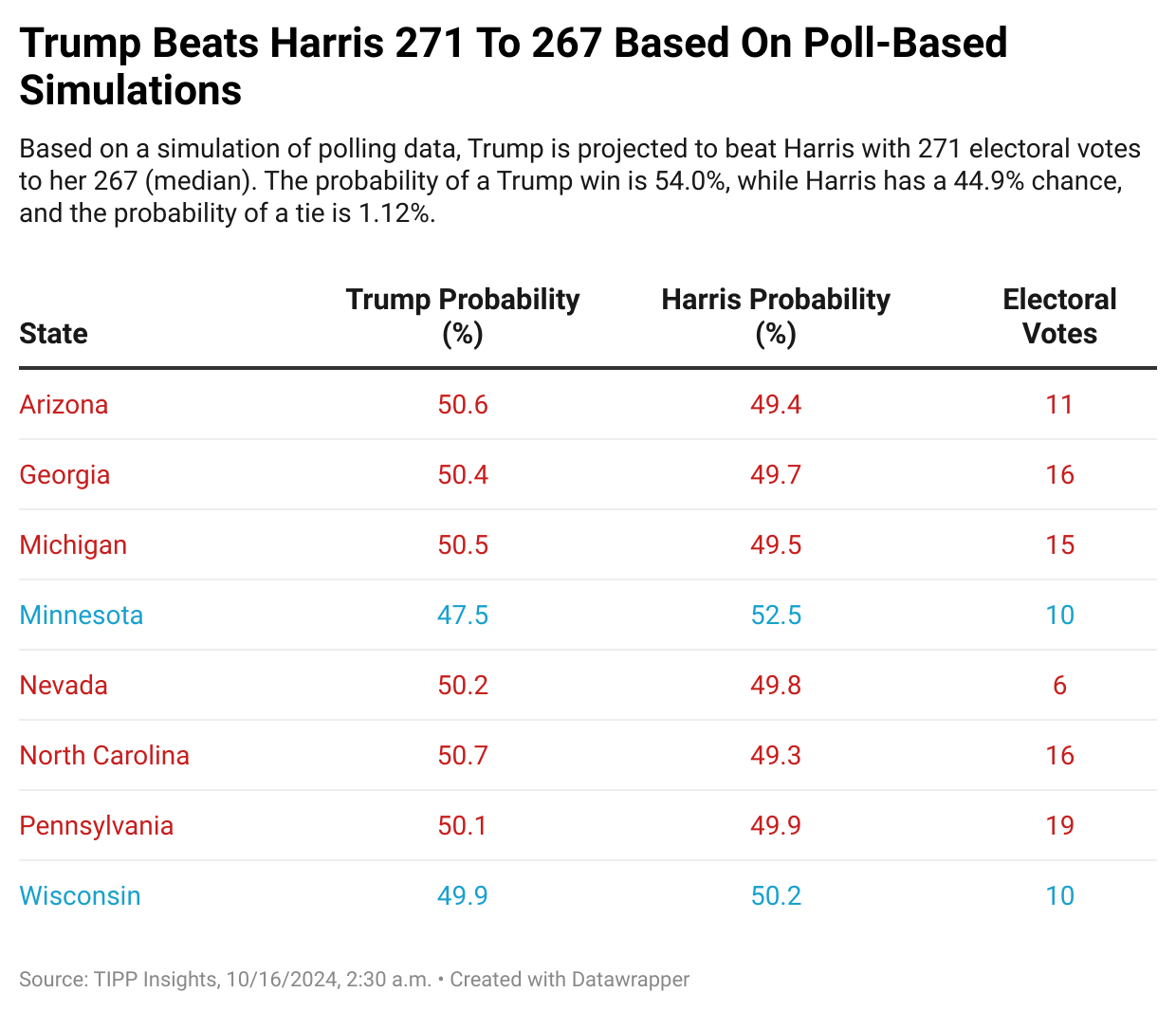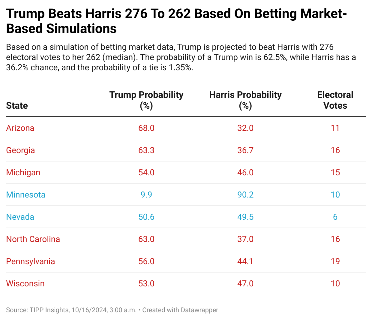 Electoral Showdown 2024: Latest Win Probabilities – October 16