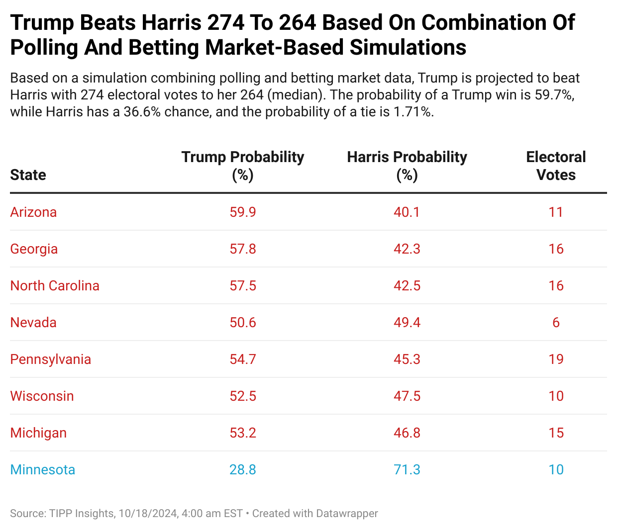 Electoral Showdown 2024: Latest Win Probabilities – October 18
