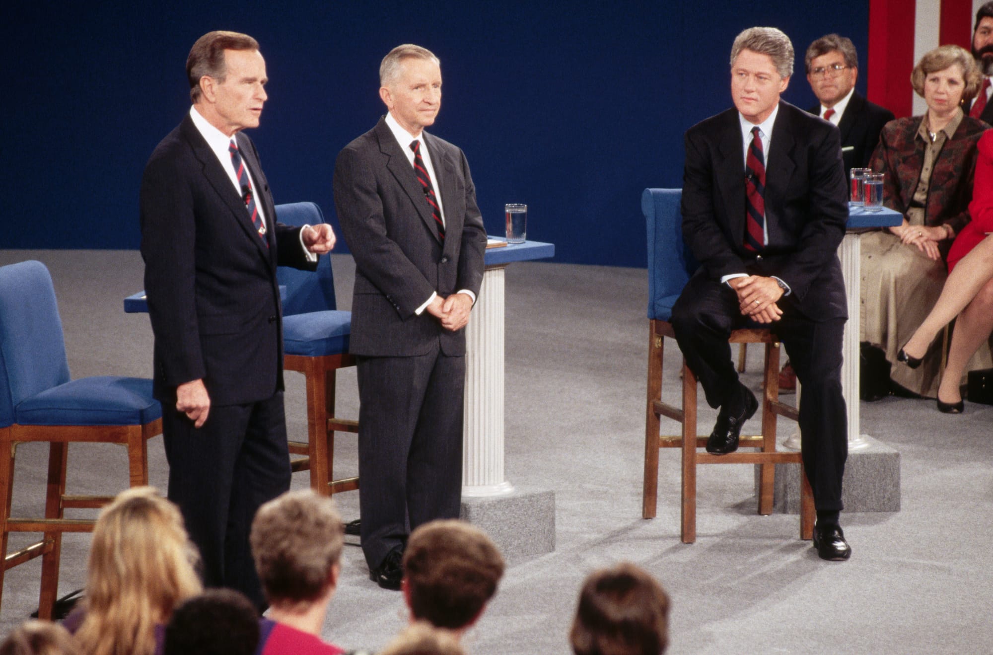 Sharing the presidential debate stage with two political veterans in Richmond - President George H.W. Bush 41, running for reelection after polling above 90% following America's victory in the first Gulf War, and the Democratic candidate, Arkansas Governor Bill Clinton, a young, charismatic, and telegenic politician burdened by a host of character issues - Perot was not the least bit unnerved.