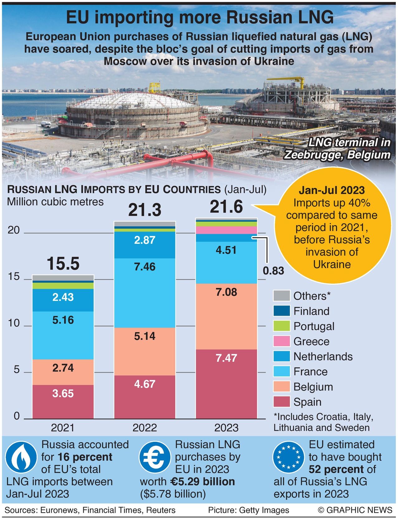 In the first seven months of this year, Belgium and Spain were the second and third-biggest buyers of Russian LNG behind China, according to analysis of industry data by Global Witness, a non-government organization.