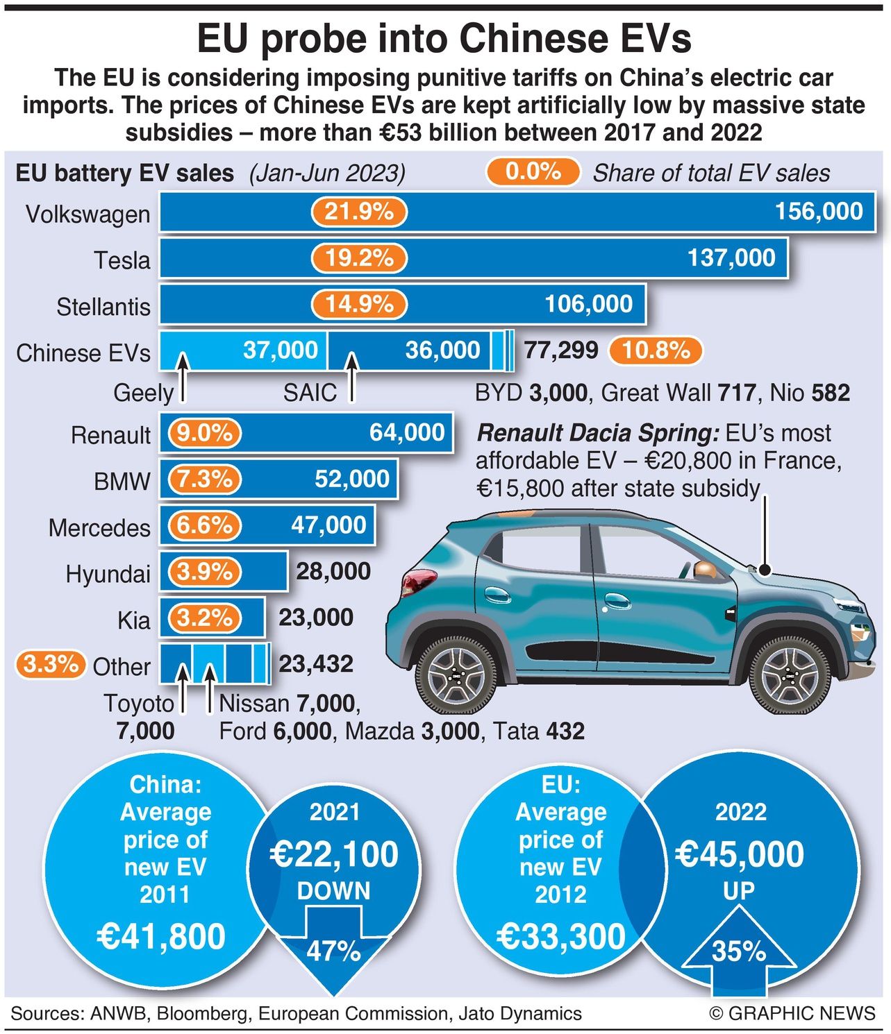 The EU is considering imposing punitive tariffs on China’s electric car imports. The prices of Chinese EVs are kept artificially low by massive state subsidies – more than €53 billion between 2017 and 2022.