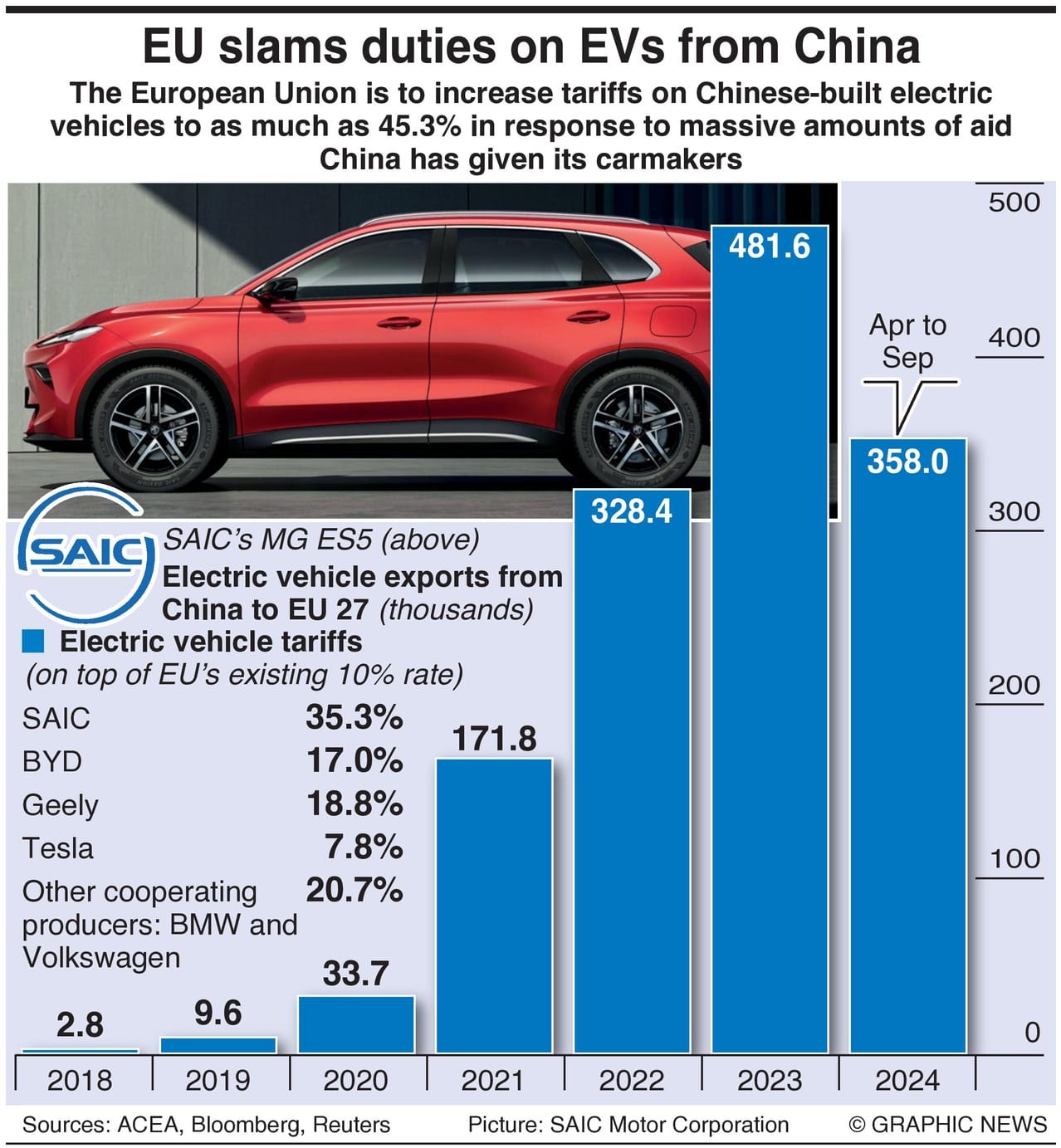 EVs have become a major flashpoint in a broader trade dispute over the influence of Chinese government subsidies on EU markets. The duties will stay in force for five years.