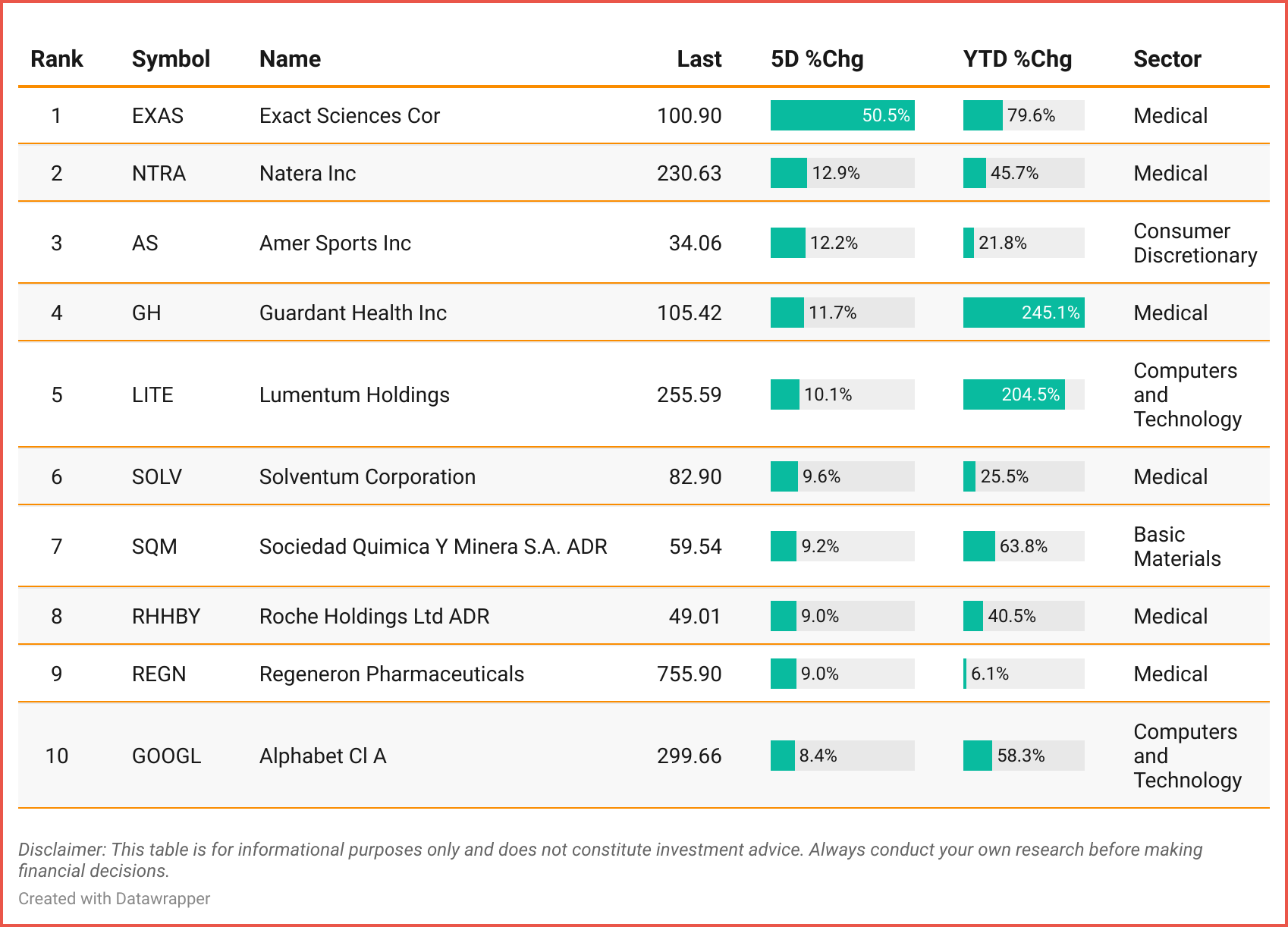Tickers: EXAS | NTRA | AS | GH | LITE | SOLV | SQM | RHHBY | REGN | GOOGL