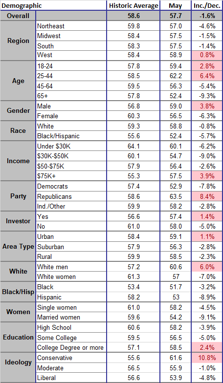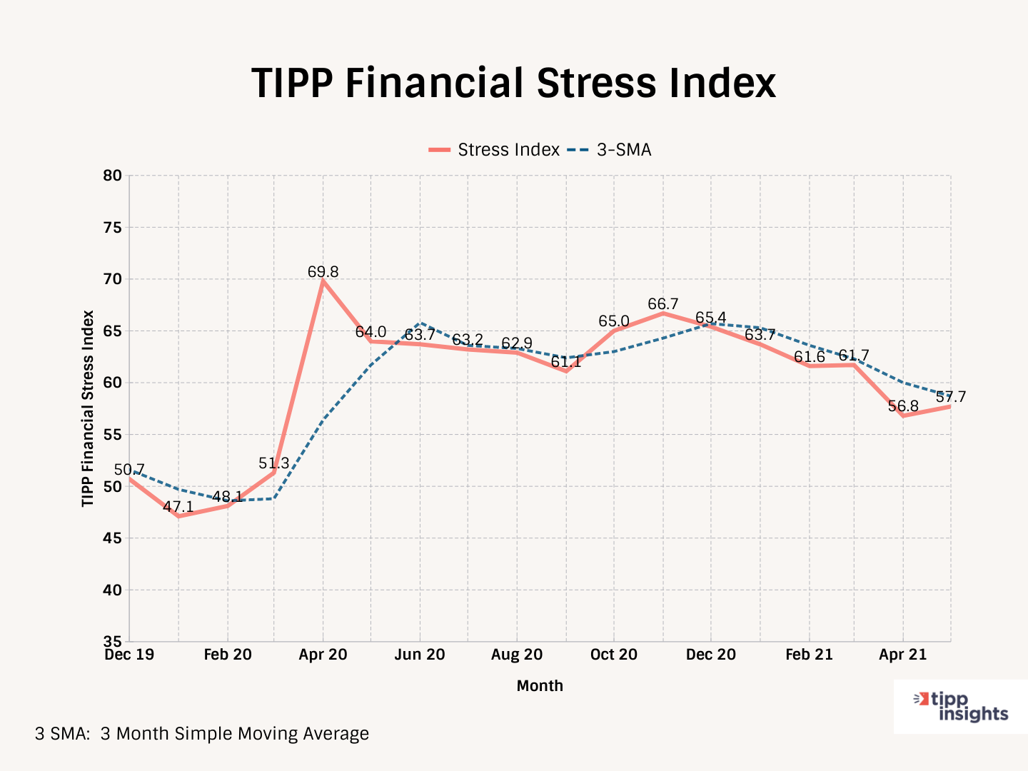 Following a 4.9-point improvement in April, the TIPP Financial Stress Index edged up by 0.9 points in May. Nonetheless, the index is below its three-month moving average for the sixth month in a row, indicating that it is committed to improving.