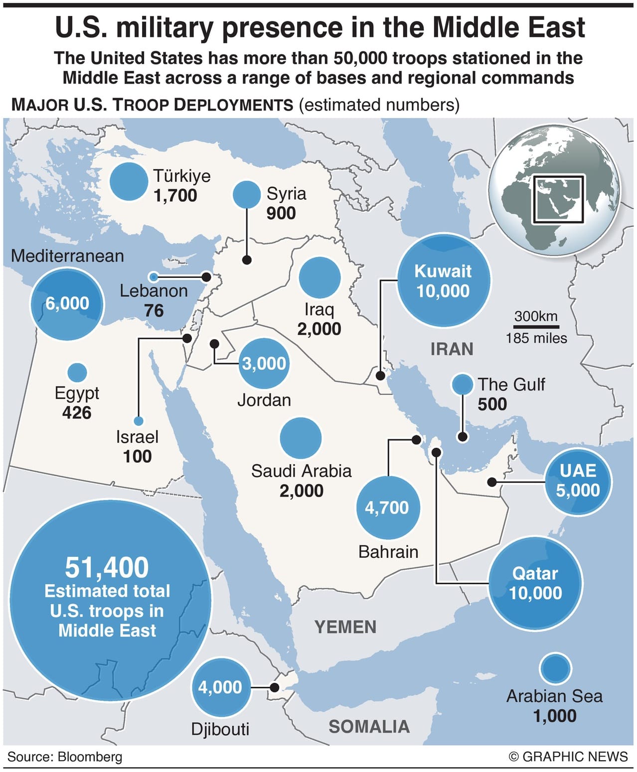 Although most of those are stationed at big bases in Qatar, the United Arab Emirates and Kuwait, many thousands more are scattered around smaller outposts.