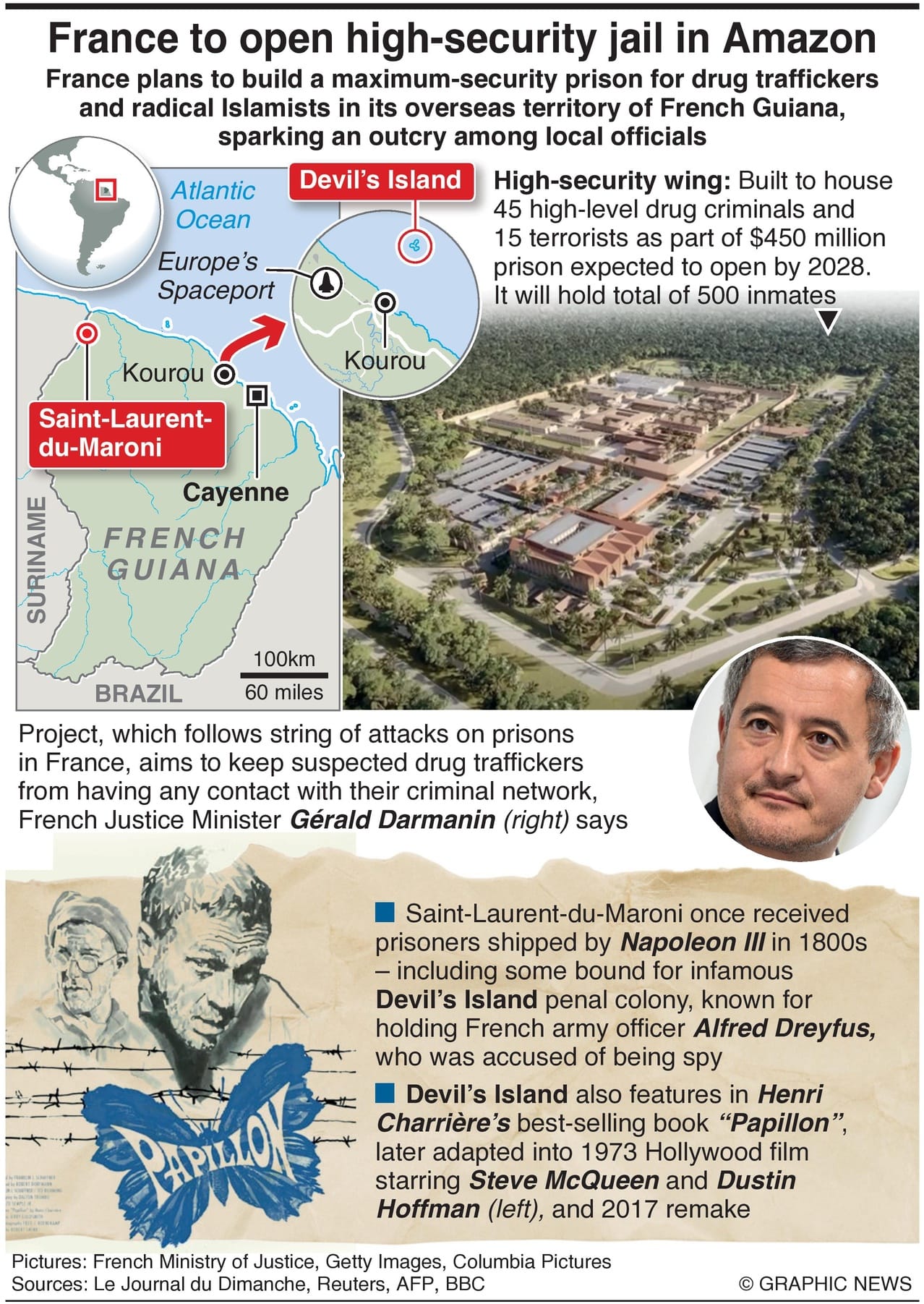 France plans to build a maximum-security prison for drug traffickers and radical Islamists in its overseas territory of French Guiana, sparking an outcry among local officials.