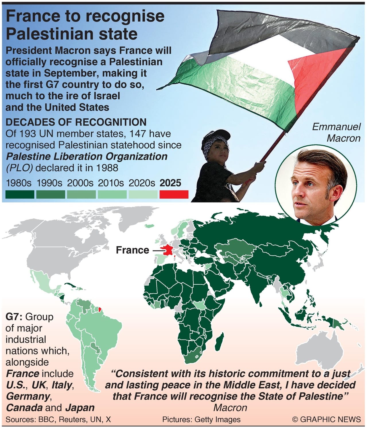 President Macron says France will officially recognise a Palestinian state in September, making it the first G7 country to do so, much to the ire of Israel and the United States.