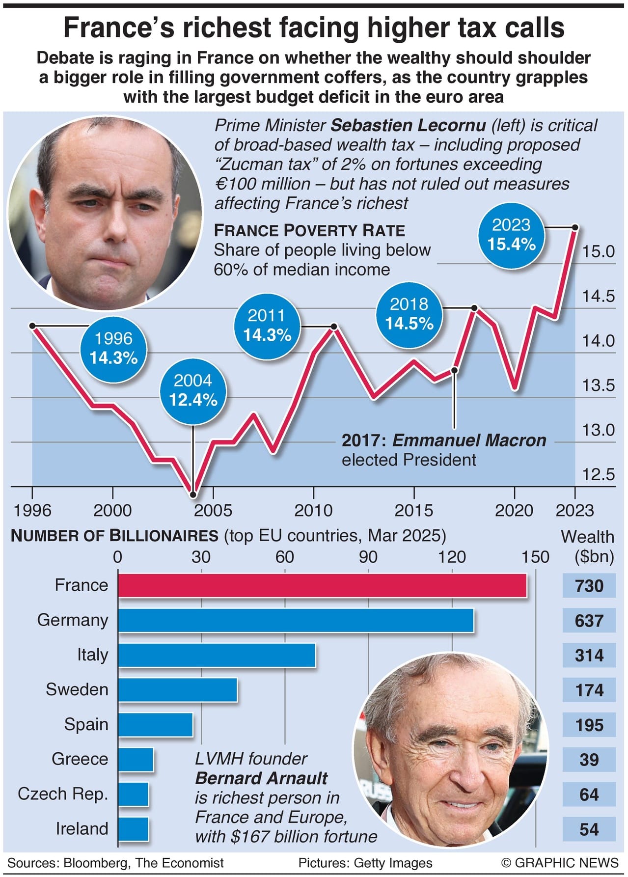 Prime Minister Sebastien Lecornu has left the door open to measures that could affect the richest, but has criticized calls for a broad-based wealth tax, saying it's up to parliament to decide what goes into the budget.