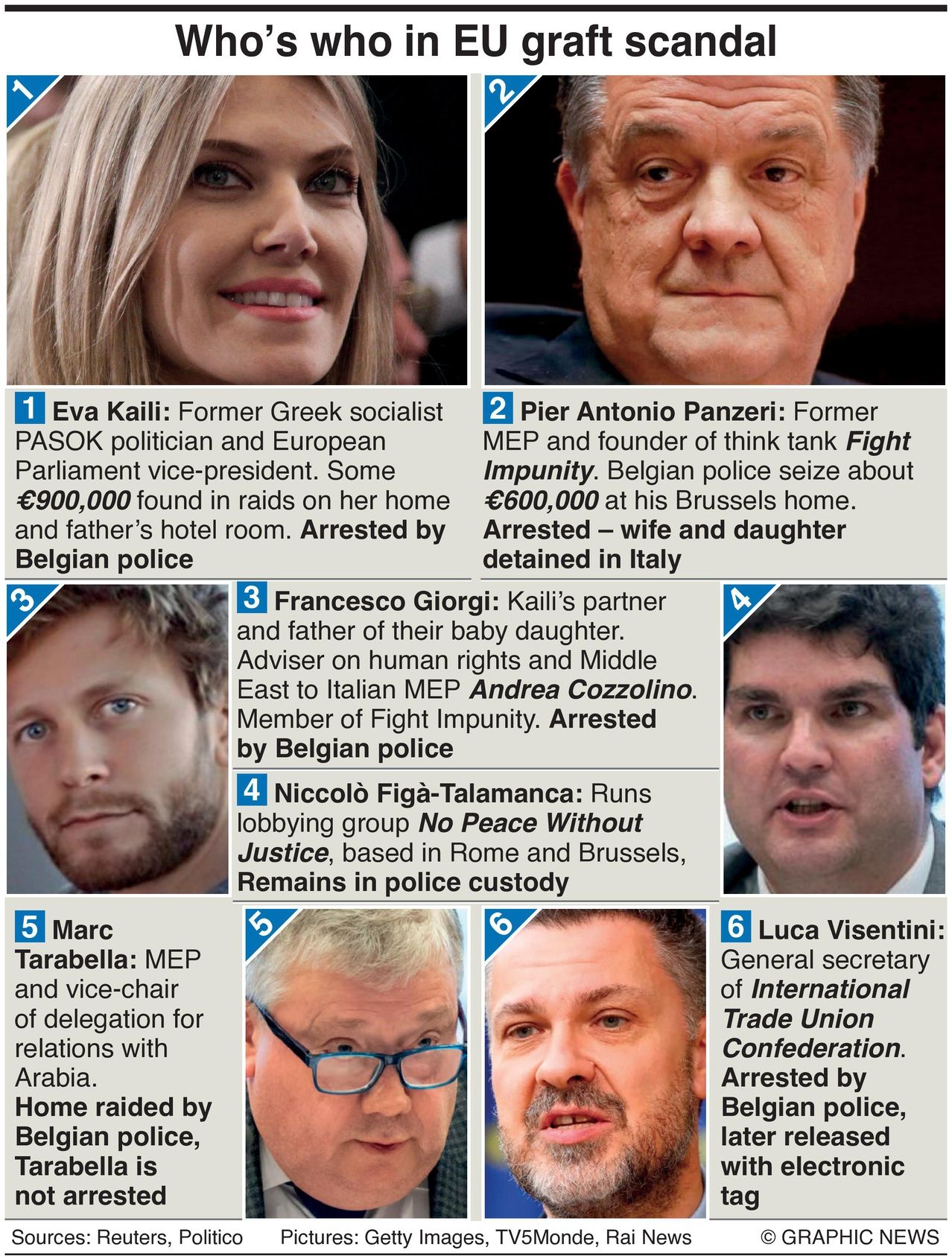 Kaili’s father, Alexandros Kailis, and Luca Visentini, chief of the International Trade Union Confederation, were detained but later released.