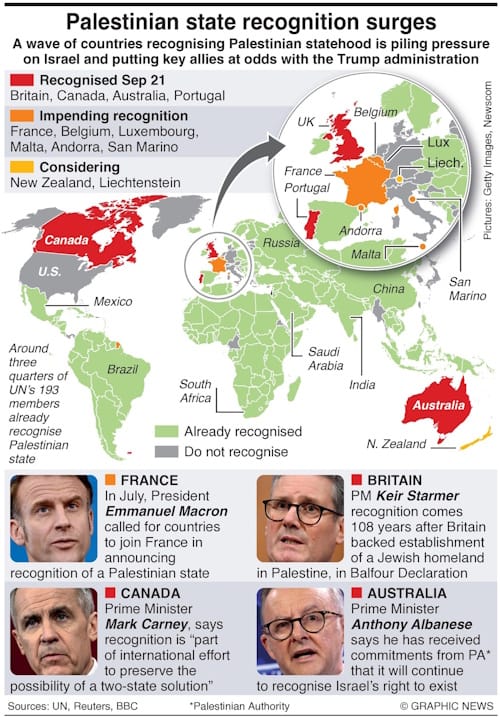 A wave of countries recognizing Palestinian statehood around a special UN conference in New York is ramping up pressure on Israel and putting key allies at odds with the Trump administration.