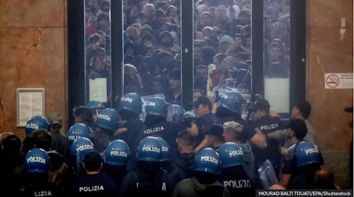 Milan and Rome saw the biggest crowds, and tensions spilled over around the central station in Milan, where some 60 police were reported hurt.