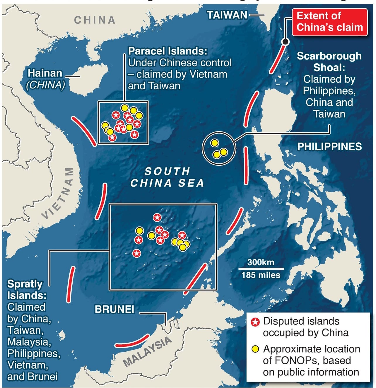 China's unilateral claims to almost ninety percent of the water body, based on Beijing's "historic" and controversial "nine-dash line," have amplified tensions in the region with its neighbors. Vietnam, the Philippines, and Taiwan have repeatedly been provoked and challenged by China's assertions, leading to confrontations in the South China Sea.