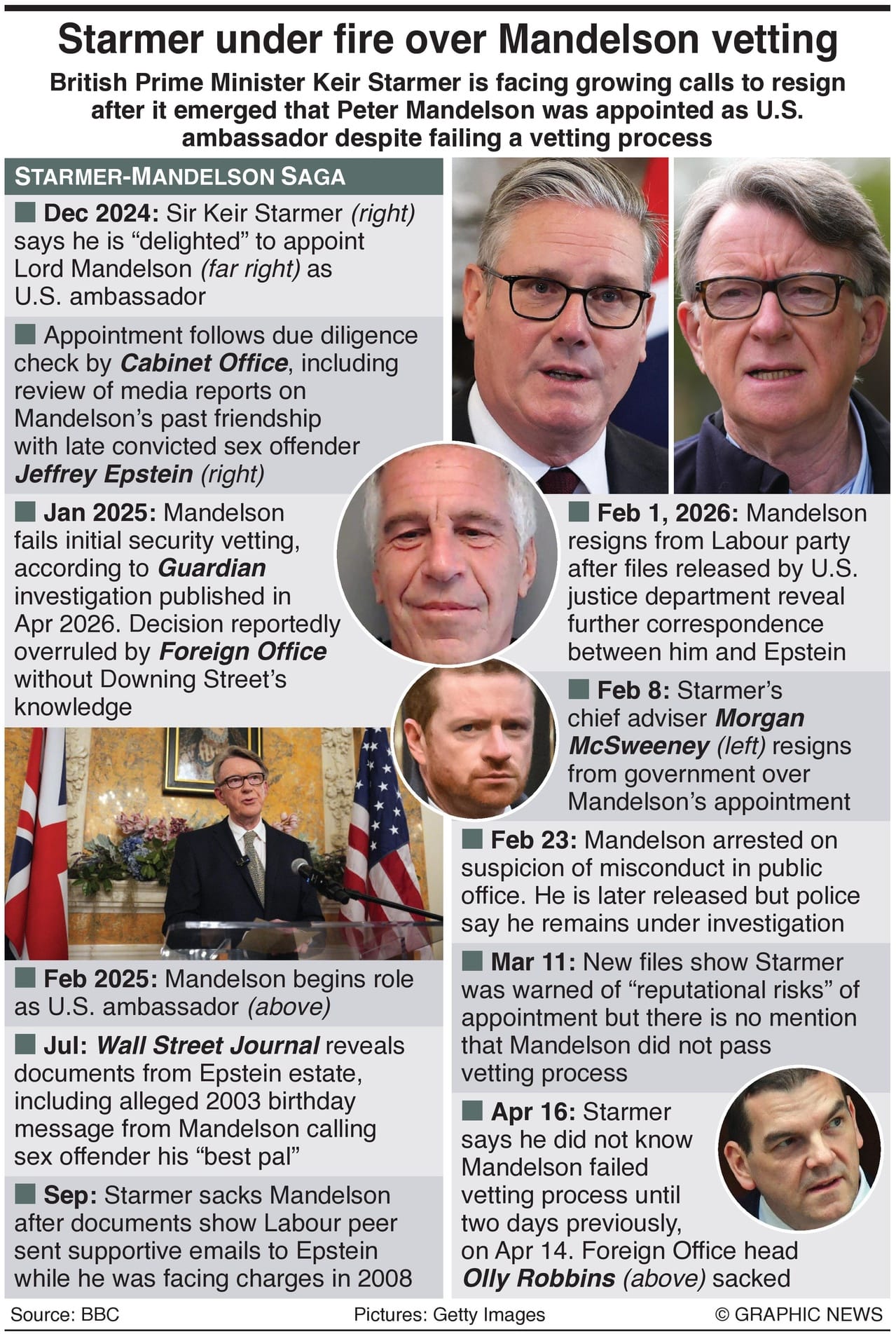 British Prime Minister Keir Starmer is facing growing calls to resign after it emerged that Peter Mandelson was appointed as U.S. ambassador despite failing a vetting process.