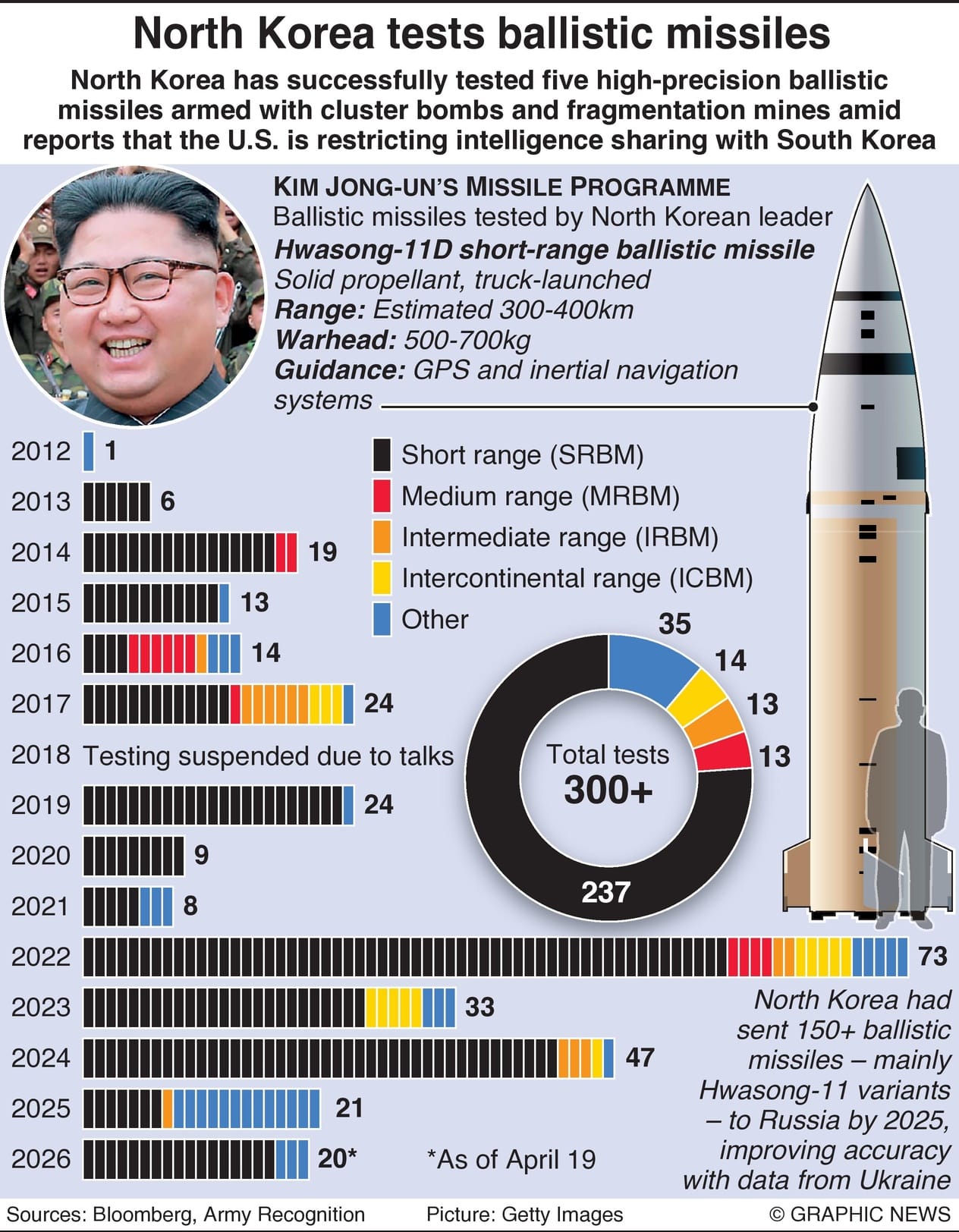 While North Korea has carried out over 300 ballistic missile tests under Kim Jong-Un, over 148 ballistic missiles had been supplied to Russia by early 2025, and accuracy has been honed with real-world data from the Ukraine war. There are growing concerns that since North Korea began contributing arms and troops to fight alongside Russia, the DPRK has gained valuable combat experience.
