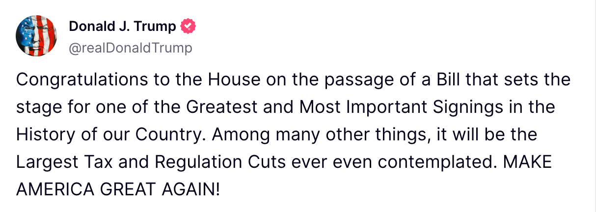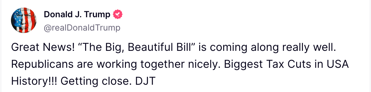 The budget plan would slash taxes by around $5 trillion while adding an estimated $5.7 trillion to the national debt over the next decade, according to Reuters. However, Republicans remain divided over where to make the necessary spending cuts. A Senate-passed version calls for just $4 billion in reductions — far below the $1.5 trillion initially sought by the House. In his recent Truth Social post, Trump said this: