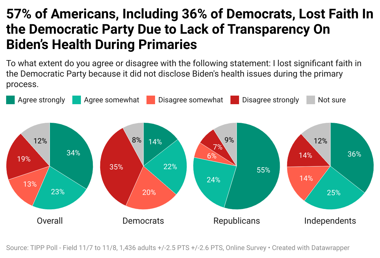 - “I lost significant faith in the Democratic Party because it did not disclose Biden’s health issues during the primary process.”