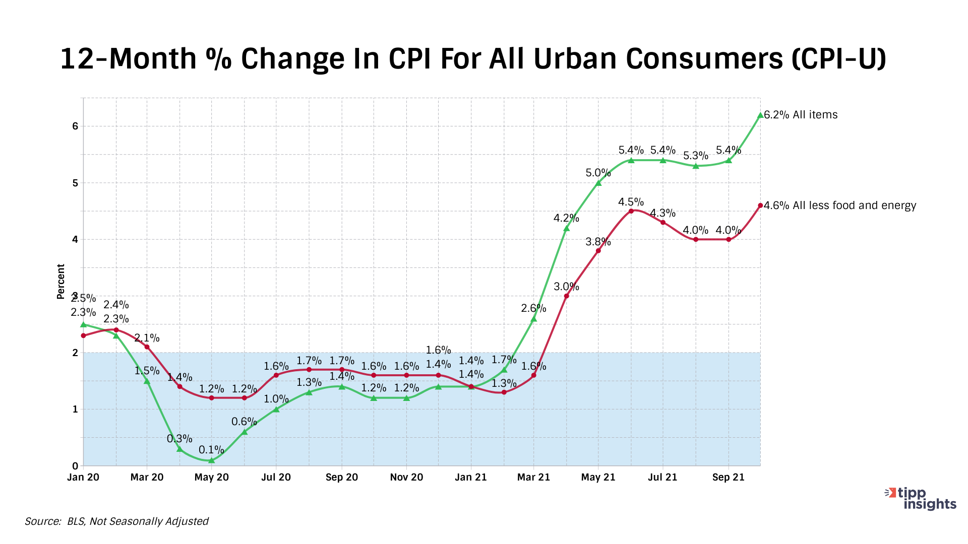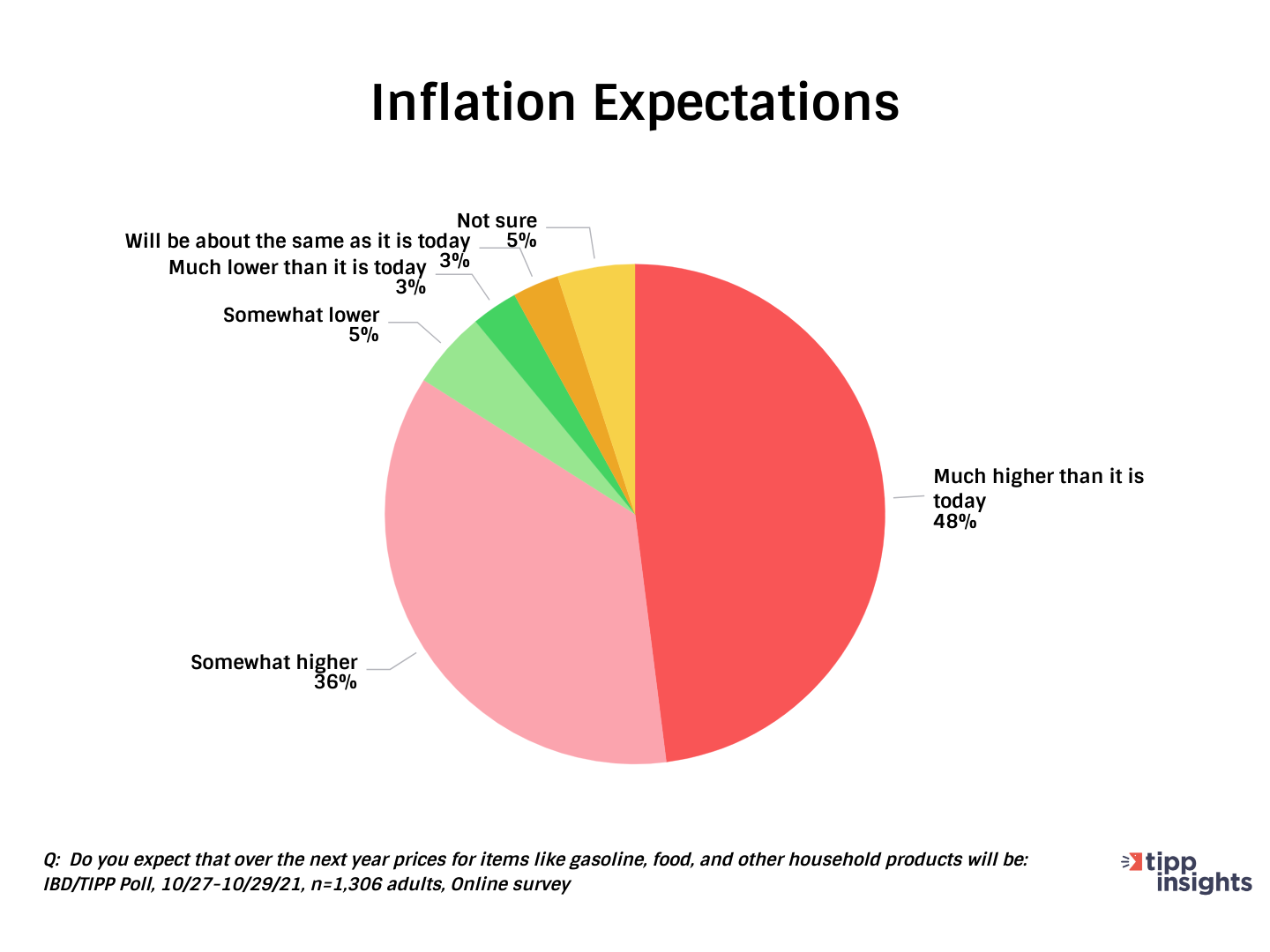 The data are unequivocal: In our November I&I/TIPP Poll, 84% said “over the next year prices for gasoline, food, and other household products” would be “much higher” or “somewhat higher” than today. Only 8% thought they’d be lower, while 5% weren’t sure.