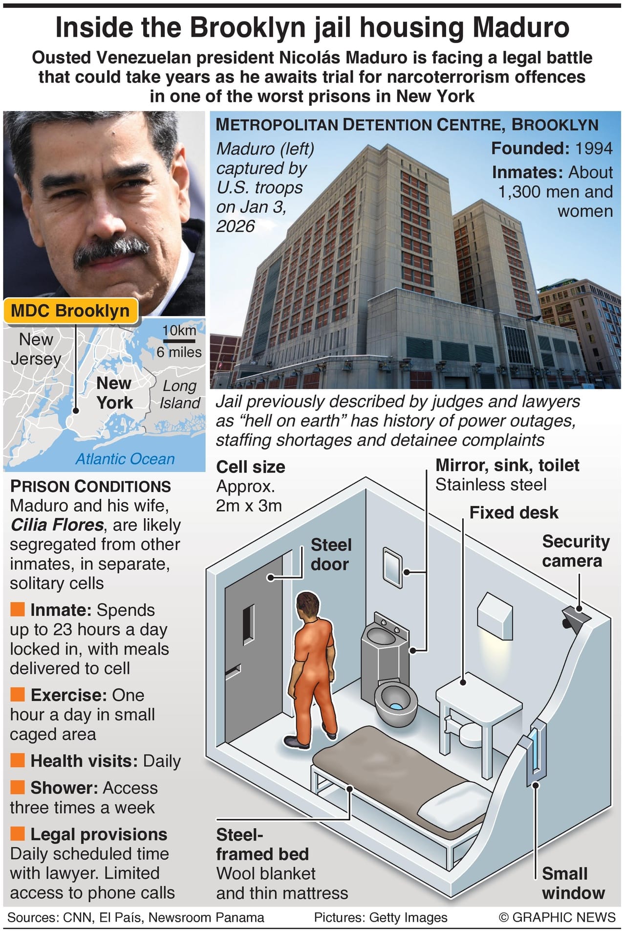 Maduro and his wife, Cilia Flores, are the latest high-profile detainees to be held in the notorious Metropolitan Detention Centre in Brooklyn, a federal jail with a documented history of power outages, staffing shortages, and detainee complaints.