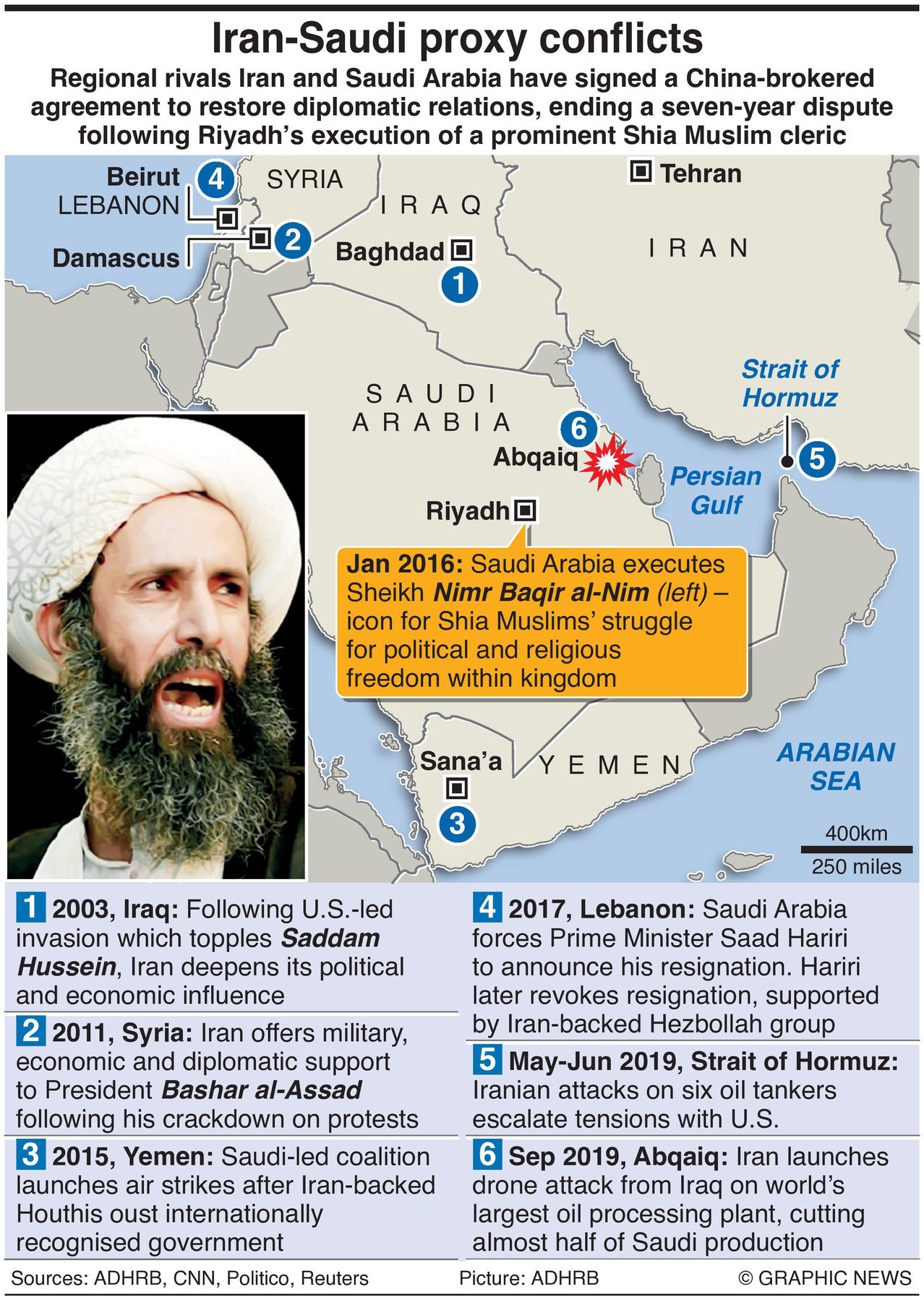 Regional rivals Iran and Saudi Arabia have signed a China-brokered agreement to restore diplomatic relations, ending a seven-year dispute following Riyadh’s execution of a prominent Shia Muslim cleric.