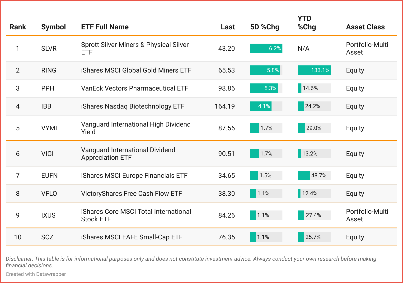 Tickers: SLVR | RING | PPH | IBB | VYMI | VIGI | EUFN | VFLO | IXUS | SCZ
