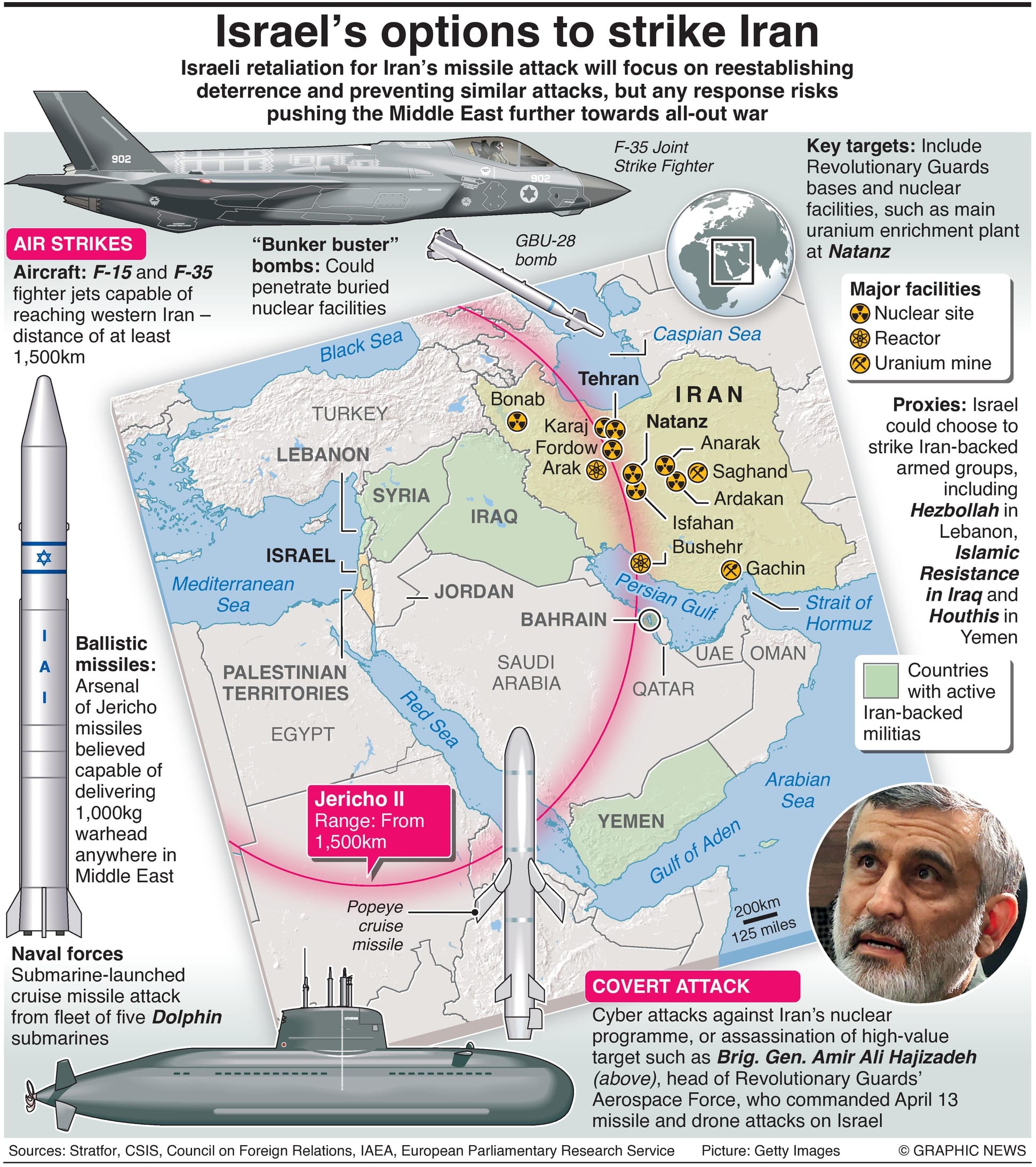 Israel's military options include strikes on Iranian allies and proxies in Lebanon, Syria, Iraq, and Yemen, as well as targeting Iran itself.