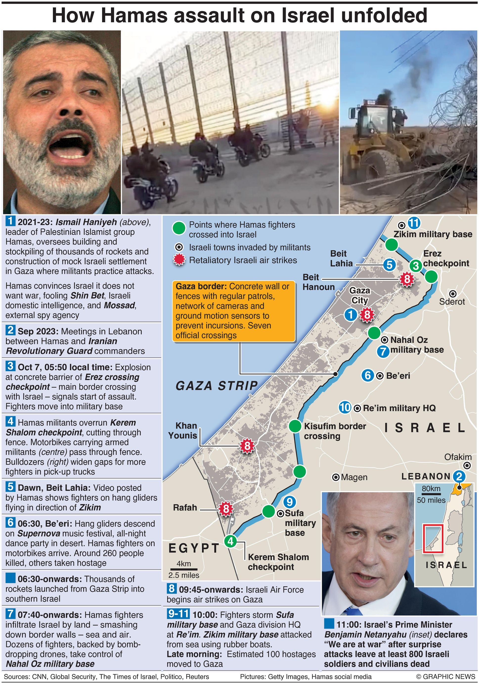 The Palestinian terror organization, Hamas, invaded southern Israel on Saturday and its troops went door to door: kidnapping and killing men, women, children and the elderly. So far over 800 Israelis have been killed, the largest loss of Jewish life in a single day since the Holocaust. Over 130 are held hostage inside Gaza: most are civilians, many of them children; over 3000 have been injured; nearly 10,000 rockets have been fired at Israeli communities, with more coming every hour. Hundreds of additional attacks have been thwarted by air, land and sea, with more attempts occurring continuously.