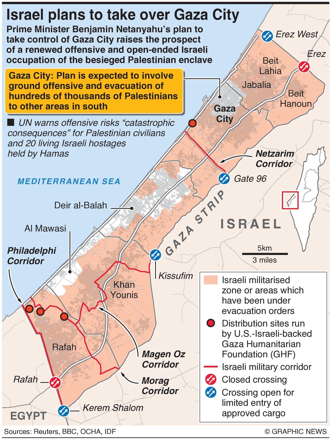 Israel’s security cabinet has approved a plan that would see ground forces deployed into the remaining 25% of Gaza not yet under Israeli control, raising the prospect of an open-ended military occupation of the besieged Palestinian territory.