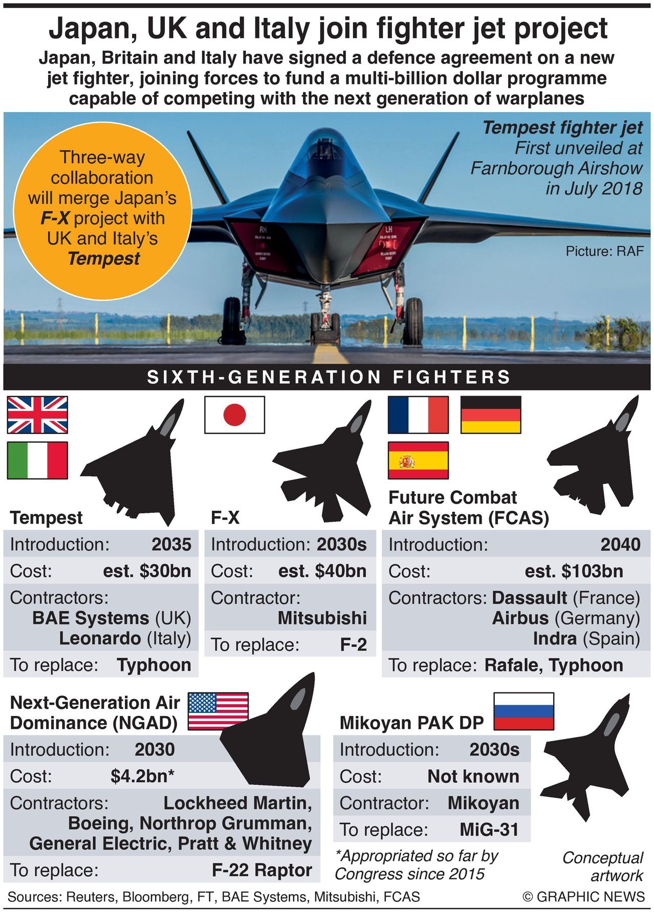 The three-way defense collaboration will merge Japan’s F-X project with UK and Italy’s Tempest.