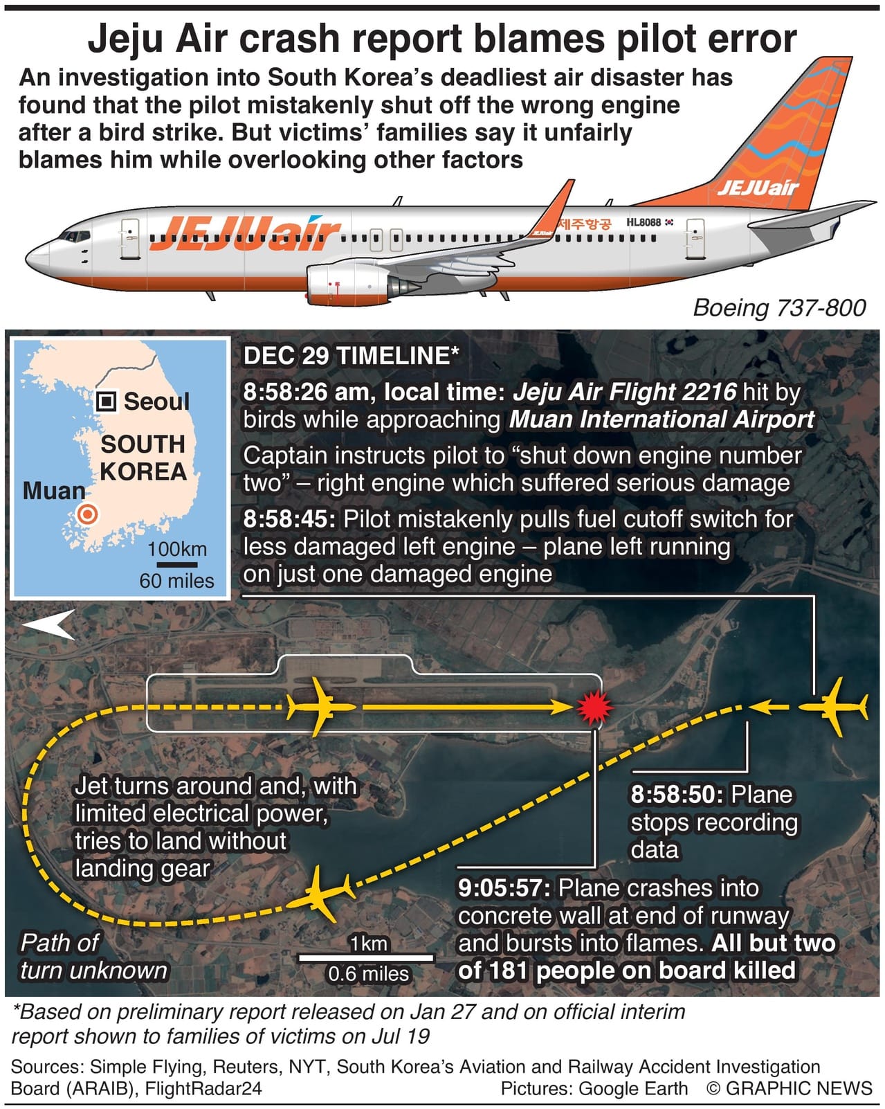 An investigation into South Korea’s deadliest air disaster has found that the pilot mistakenly shut off the wrong engine after a bird strike. But victims’ families say it unfairly blames him while overlooking other factors.