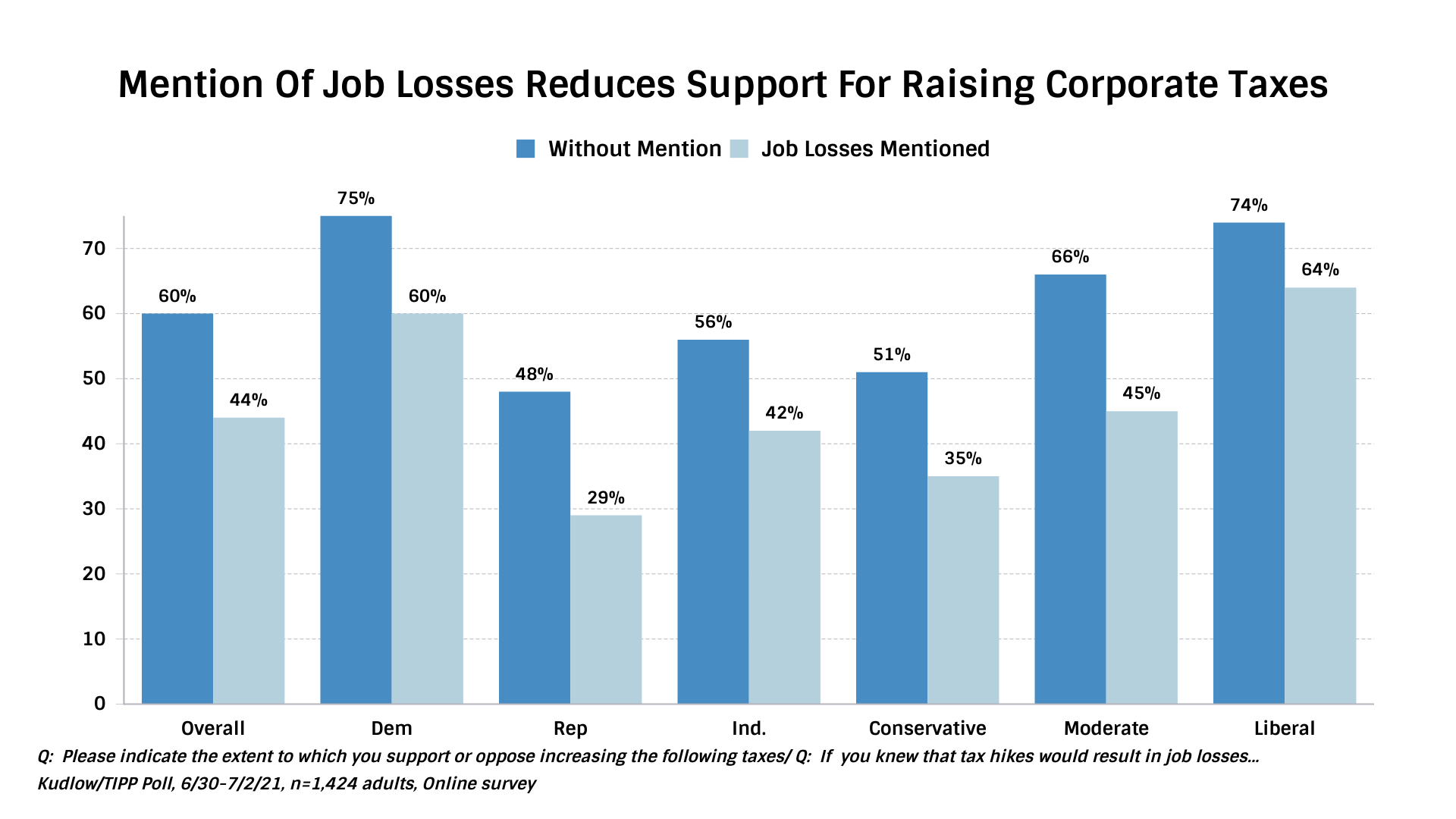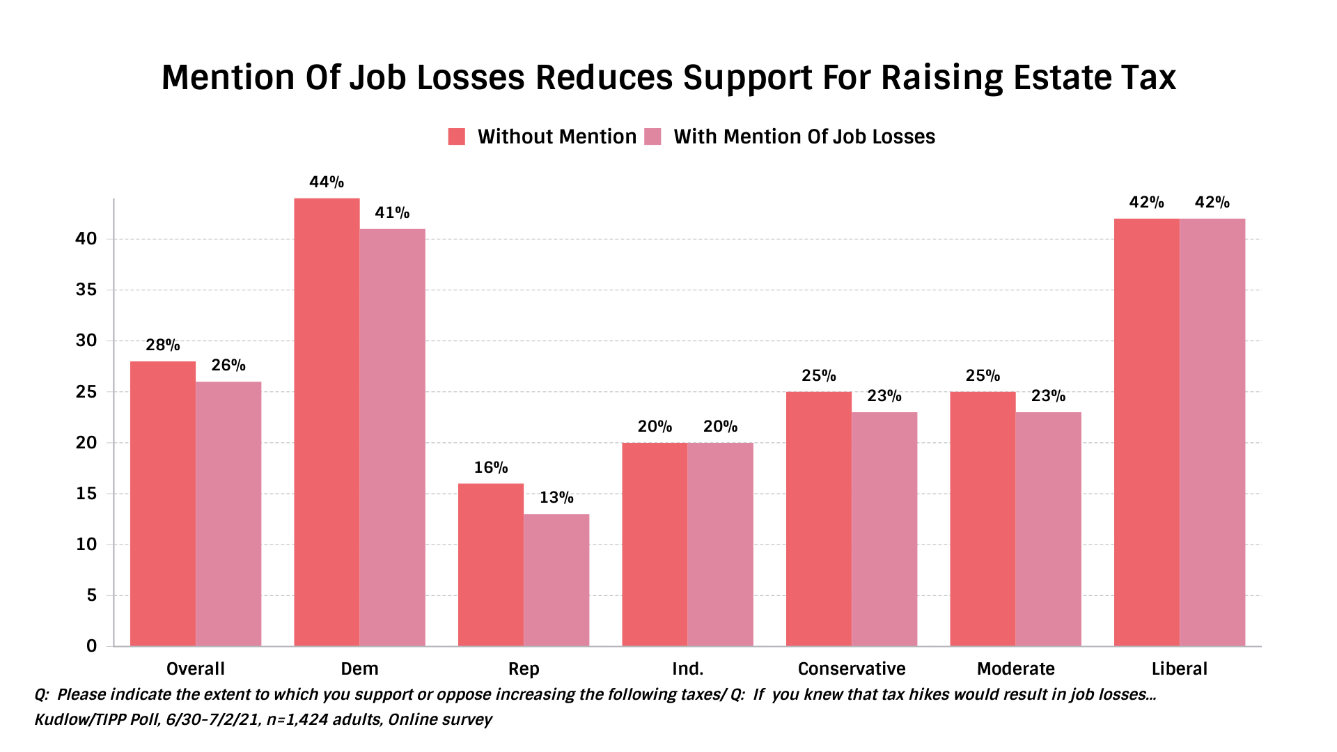 A follow-up question asked if they would support the same tax increase if it resulted in the loss of jobs. The survey found that numbers supporting the hike dropped significantly across the board.