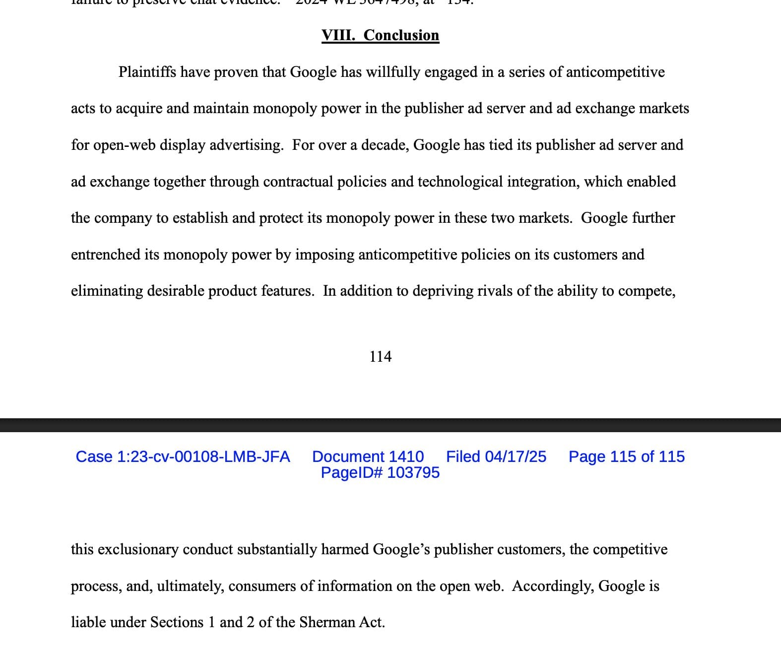 Google now faces the possibility of separate court-ordered divestitures, with another trial set next week in Washington over its search and browser dominance. The DOJ and state prosecutors argued Google used acquisitions, customer lock-ins, and market control to build its monopoly. Google contended the claims are outdated and ignore competition from companies like Amazon and Comcast. The decision follows a three-week trial held last year in Virginia.
