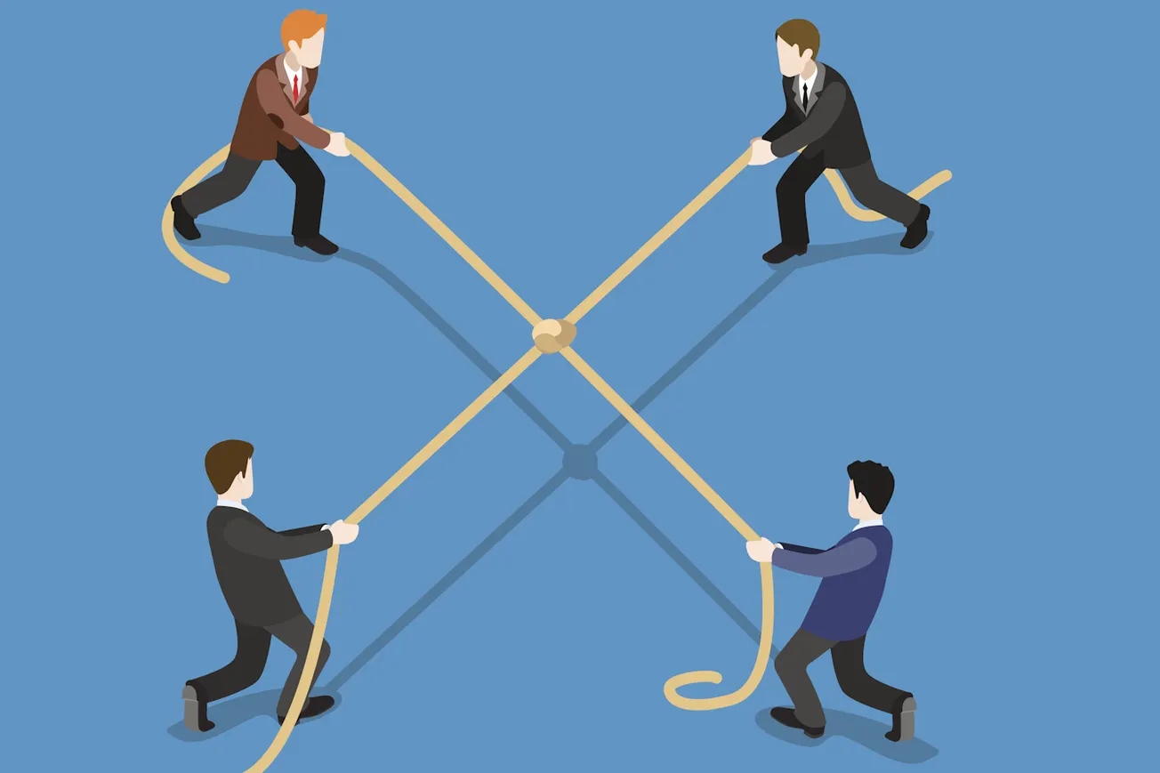 In these challenging times, there are four tug-of-war ropes on the Left, each pulling in a different direction.