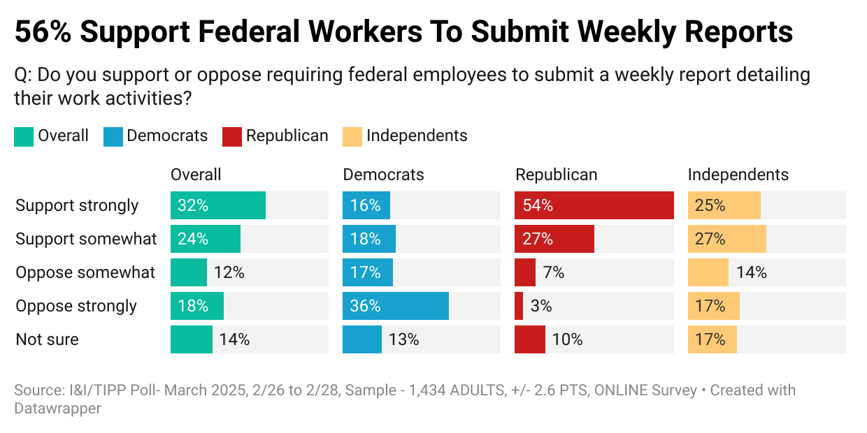 I&I/TIPP asked Americans about this: "Do you support or oppose requiring federal employees to submit a weekly report detailing their work activities?"