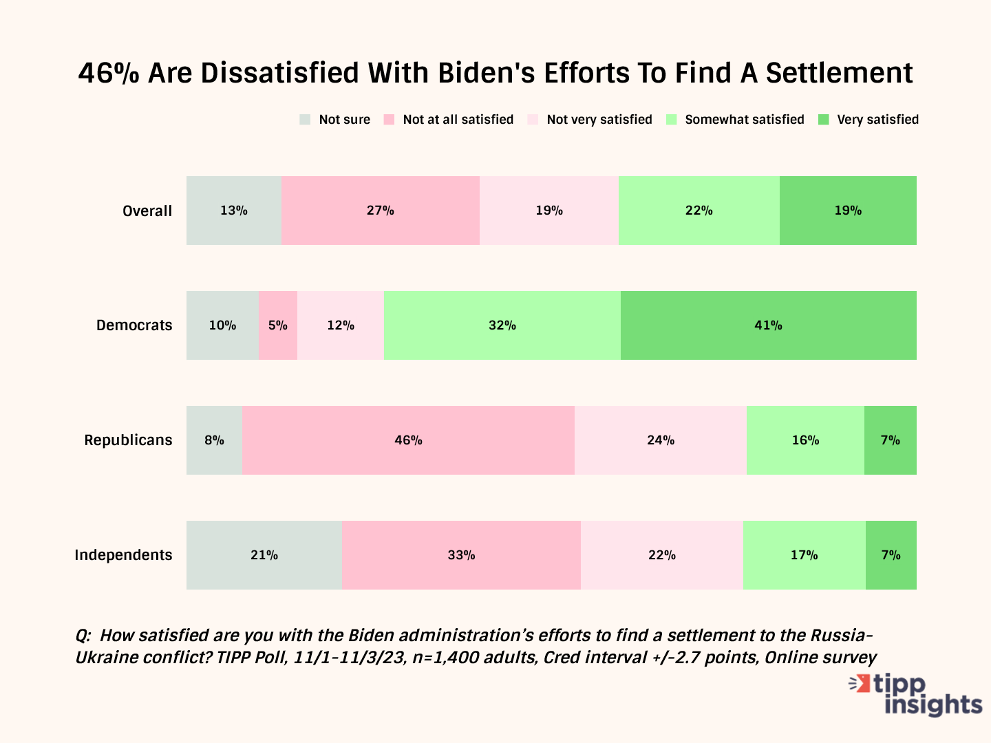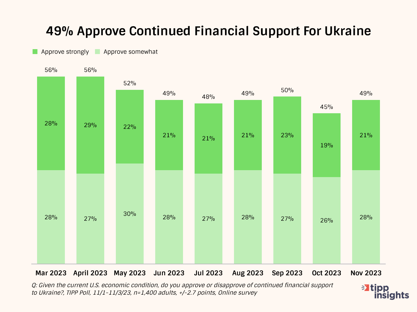 The U.S. is $34 trillion in debt. Many Americans desire fiscal austerity and are concerned about their government's unsustainable borrowing. According to a recent TIPP poll completed on Friday, only 49% of Americans approve of continued financial support to Ukraine, while 46% of respondents expressed dissatisfaction with President Biden's efforts to reach a settlement.