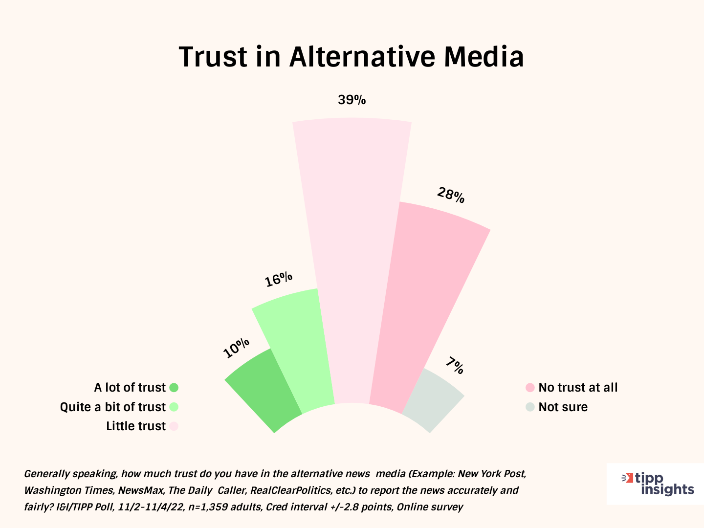 Then the same question is asked about the “alternative media,” which includes less-mainstream outlets, the New York Post, Washington Times, News Max, The Daily Caller, and Real Clear Politics, among others.