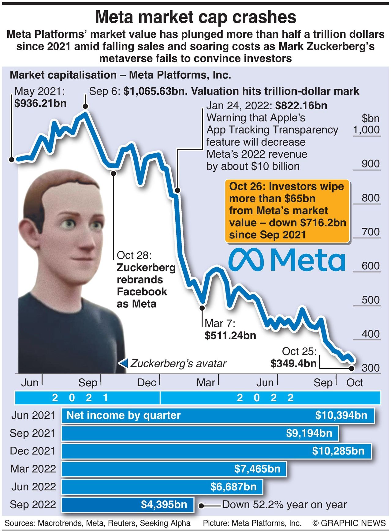 A year ago, on October 28, 2021, Zuckerberg signaled his intent by renaming and restructuring Facebook. The core social networking businesses became one-half of Meta. At the same time, Reality Labs, the division dedicated to the metaverse, completed the rebranding with $10bn of investment and a doubling of its workforce to 20,000 engineers.
