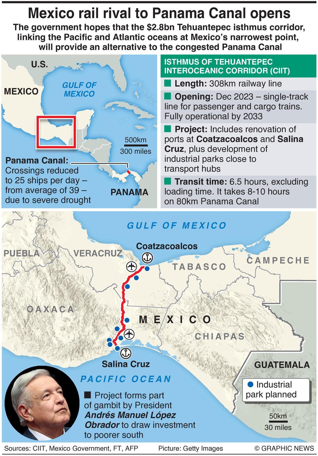 The Isthmus of Tehuantepec Interoceanic Corridor (CIIT) comprises a 308km railway line between renovated ports at Salina Cruz in Oaxaca state and Coatzacoalcos in Veracruz.
