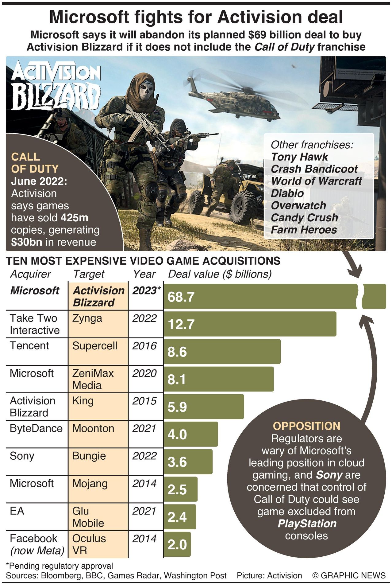 Microsoft says it will abandon its planned $69 billion deal to buy Activision Blizzard if it does not include the “Call of Duty” franchise.