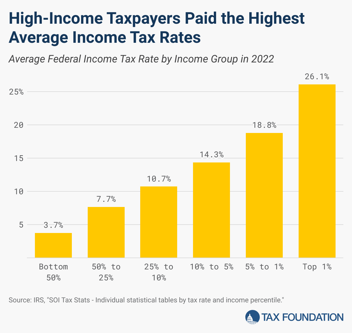 Higher earners shoulder a disproportionate share of income taxes. The top 1% pays an average rate of 26.1%, versus just 3.7% for the bottom half—about 7x higher. The system is clearly progressive, but the debate is whether it’s progressive enough—or too much.