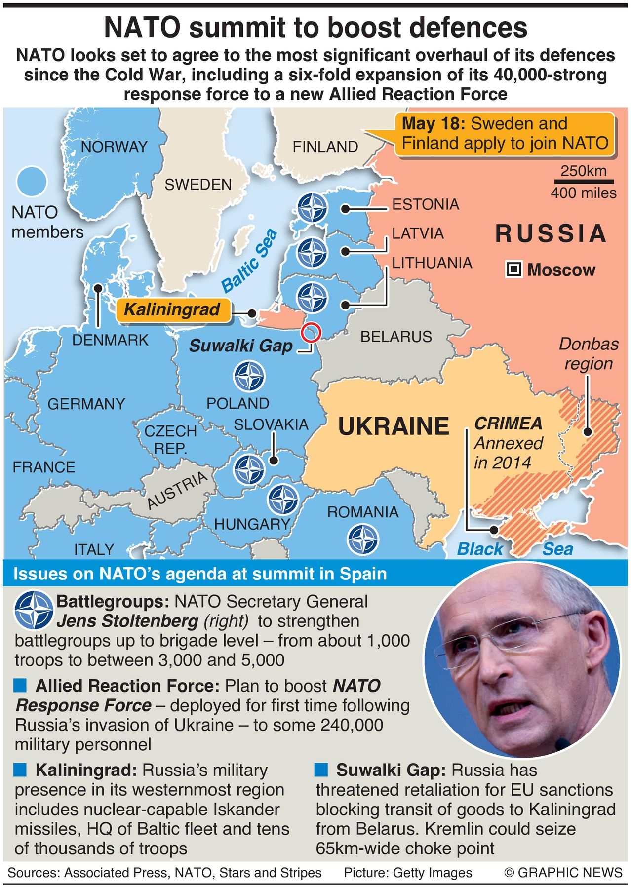 NATO Secretary-General Jens Stoltenberg has said that NATO allies will agree “to strengthen battlegroups in the east up to brigade level.” A brigade can be between 3,000 and 5,000 personnel.