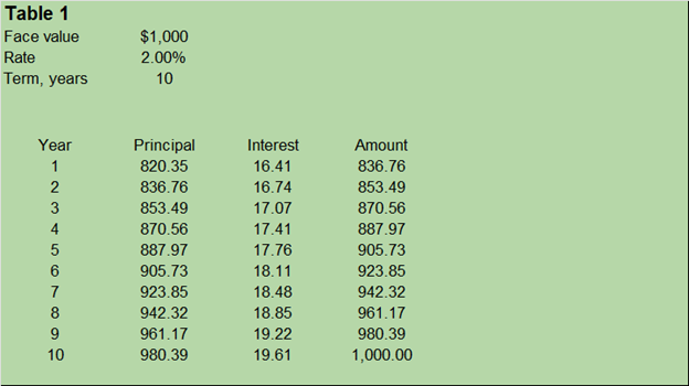 Table 1 represents the bond when it was first sold at a Treasury auction. Assume that the market interest rate was 2%.