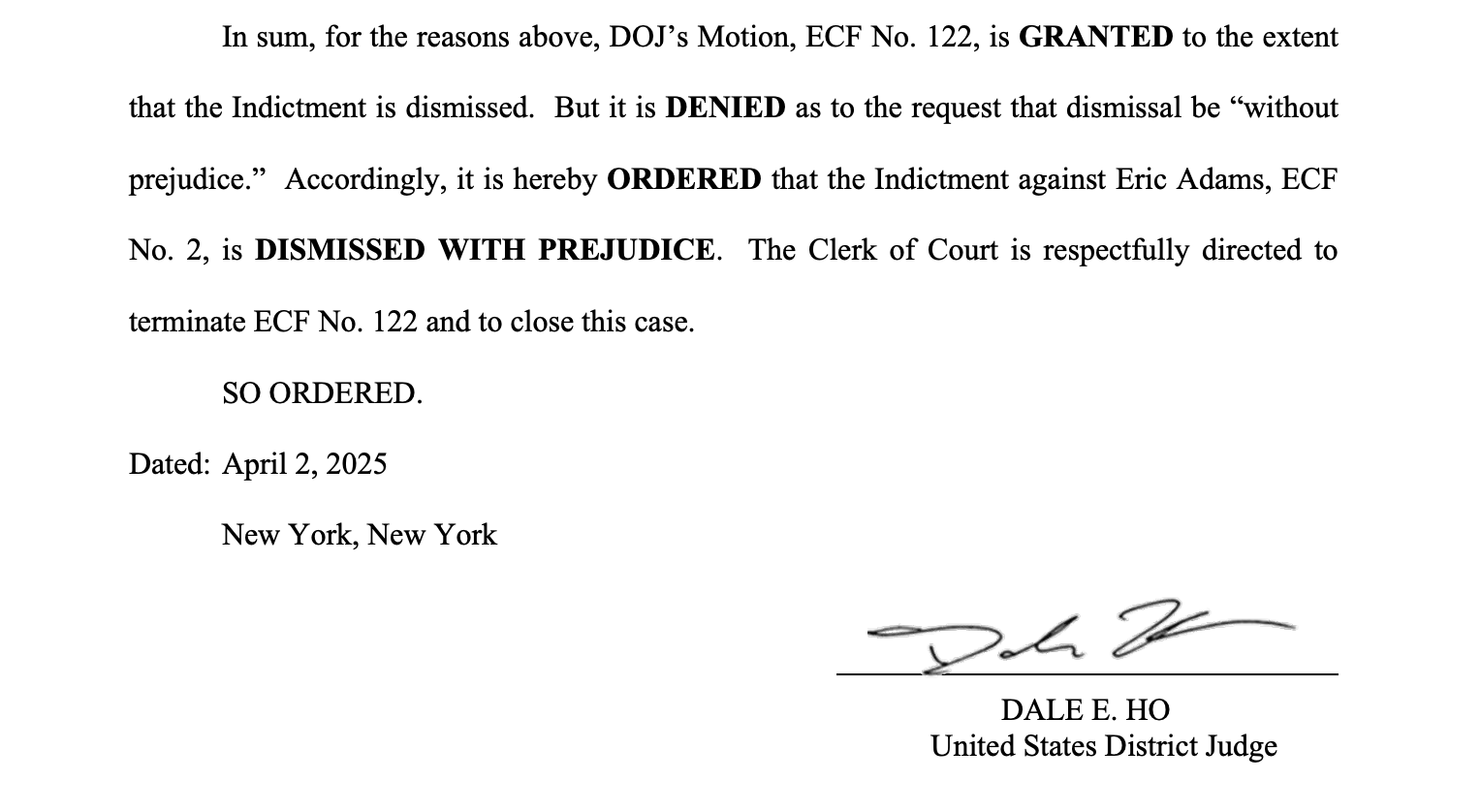 A federal judge has permanently dismissed the criminal case against New York City Mayor Eric Adams, weeks after the Trump administration instructed prosecutors to drop corruption charges. The case, which involved conspiracy, fraud, bribery, and illegal campaign contributions, was dismissed "with prejudice," meaning the charges cannot be revived. Adams had been accused of accepting over $100,000 in gifts from Turkish citizens in exchange for favors, though he denied any wrongdoing.