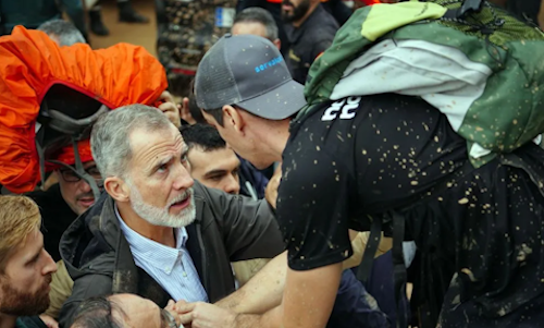 With mud on their faces and clothes, King Felipe and Queen Letizia were later seen consoling members of the crowd. More than 200 people were killed in the floods, the worst in Spain for decades.