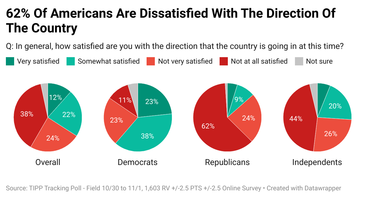 Digging further in, TIPP asked voters: “In general, how SATISFIED are you with the direction the country is going in at this time?”