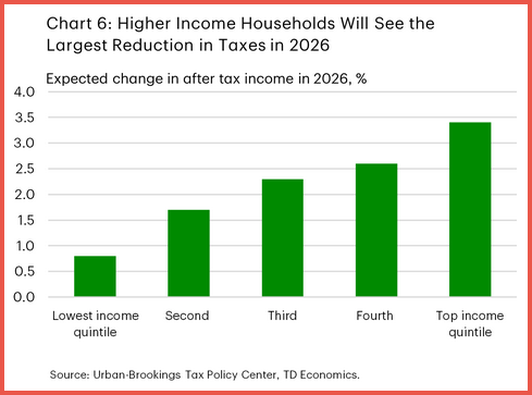 Projected tax changes for 2026 are expected to deliver the largest boost to top earners. After-tax income for the highest-income households could rise by roughly 3–3.5%, compared with less than 1% for the lowest-income group, suggesting a widening gap in disposable income.